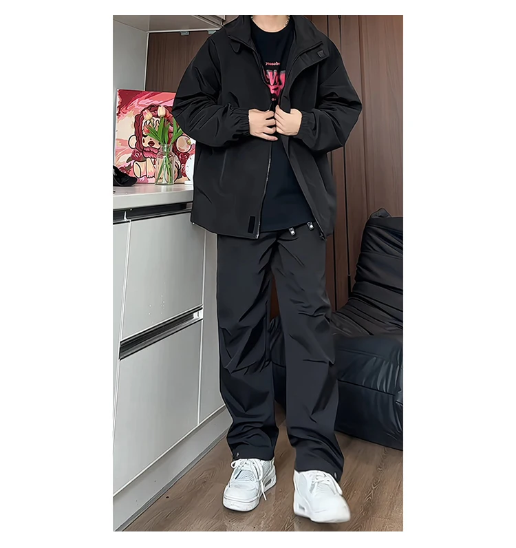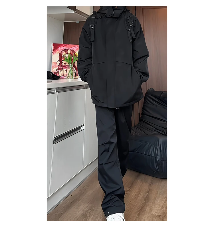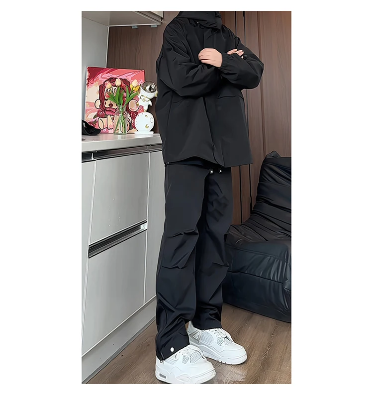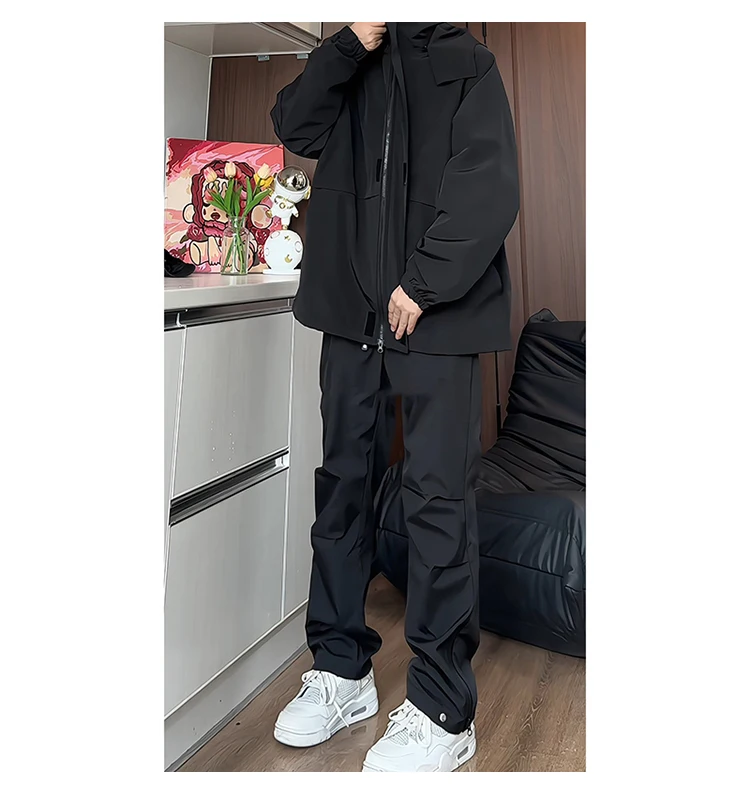 Hip Hop Mens Tracksuit Set Pant Zippers Pockets Outwear Streetwear Windbreaker Jackets And Pants 2 pcs Clothing
