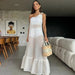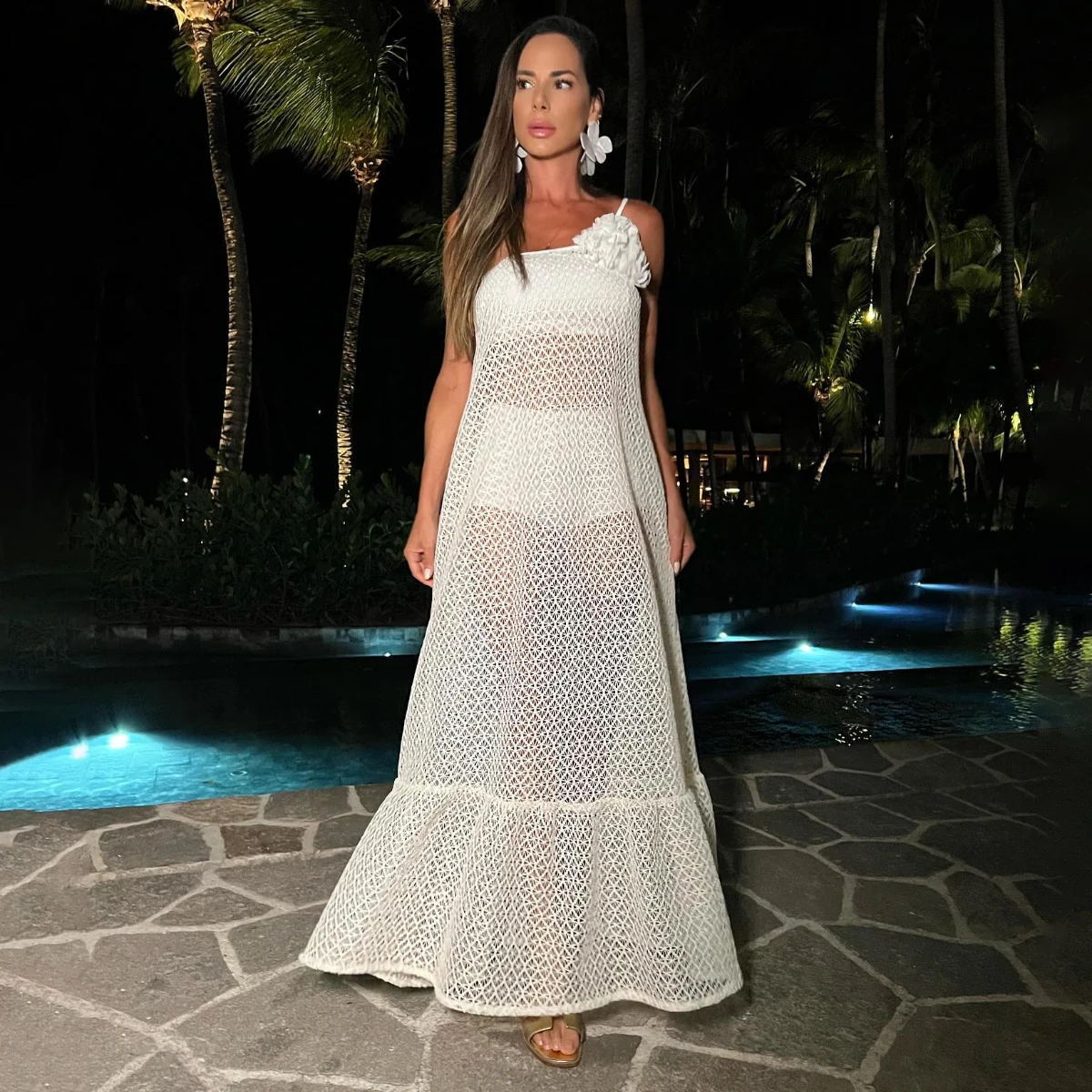 3D Floral Lace Up Backless Cover Up For Women Crochet Beach Dress High Slit White Hollowen Skirt Summer Sexy Beach Outfit