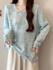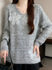 3D Floral Sweet Sweaters Women Loose Fashion V Neck Elegant Knitted Jumper Casual Chic Korean Female Fall Winter Long Sleeve Top