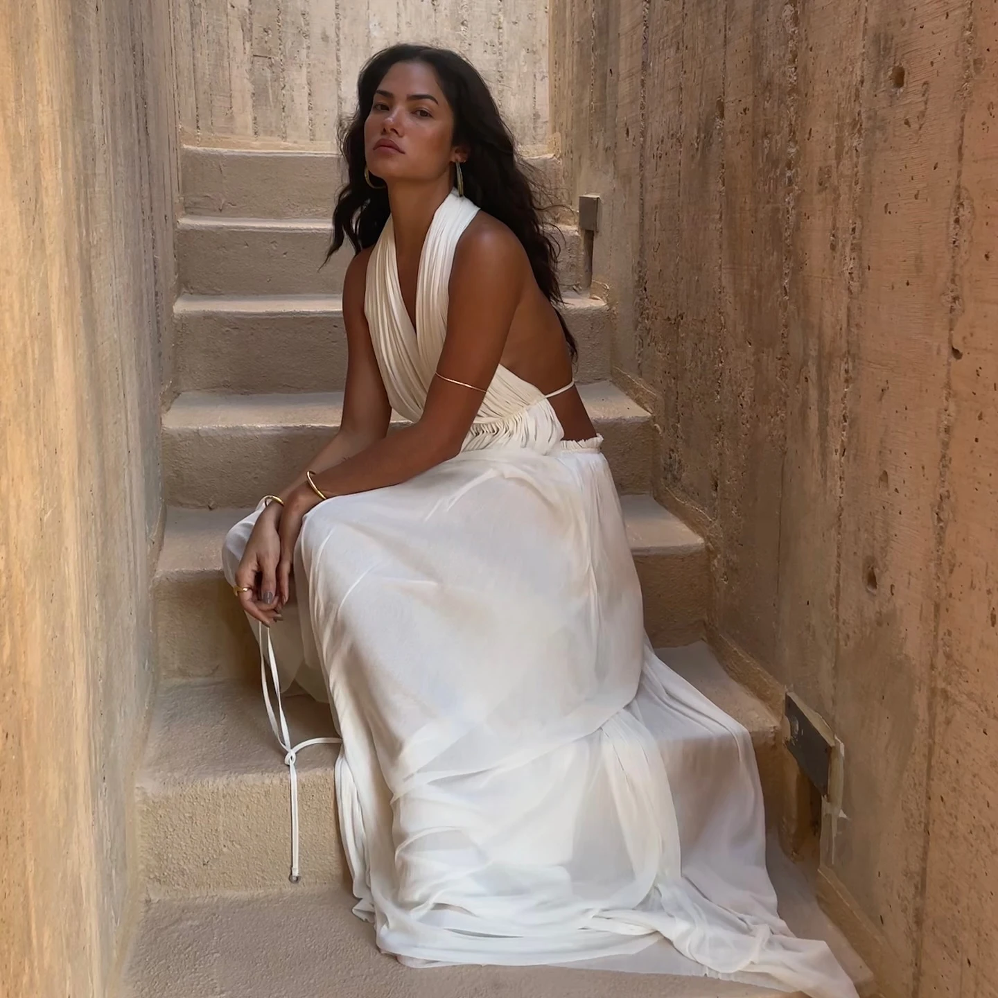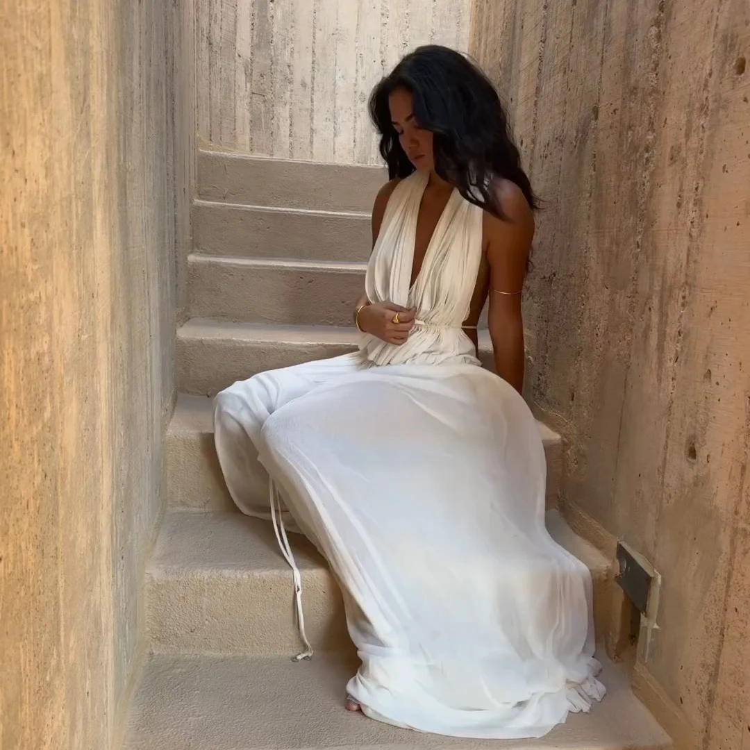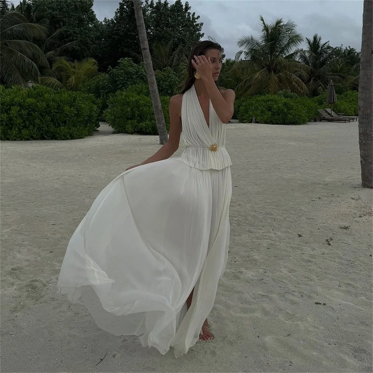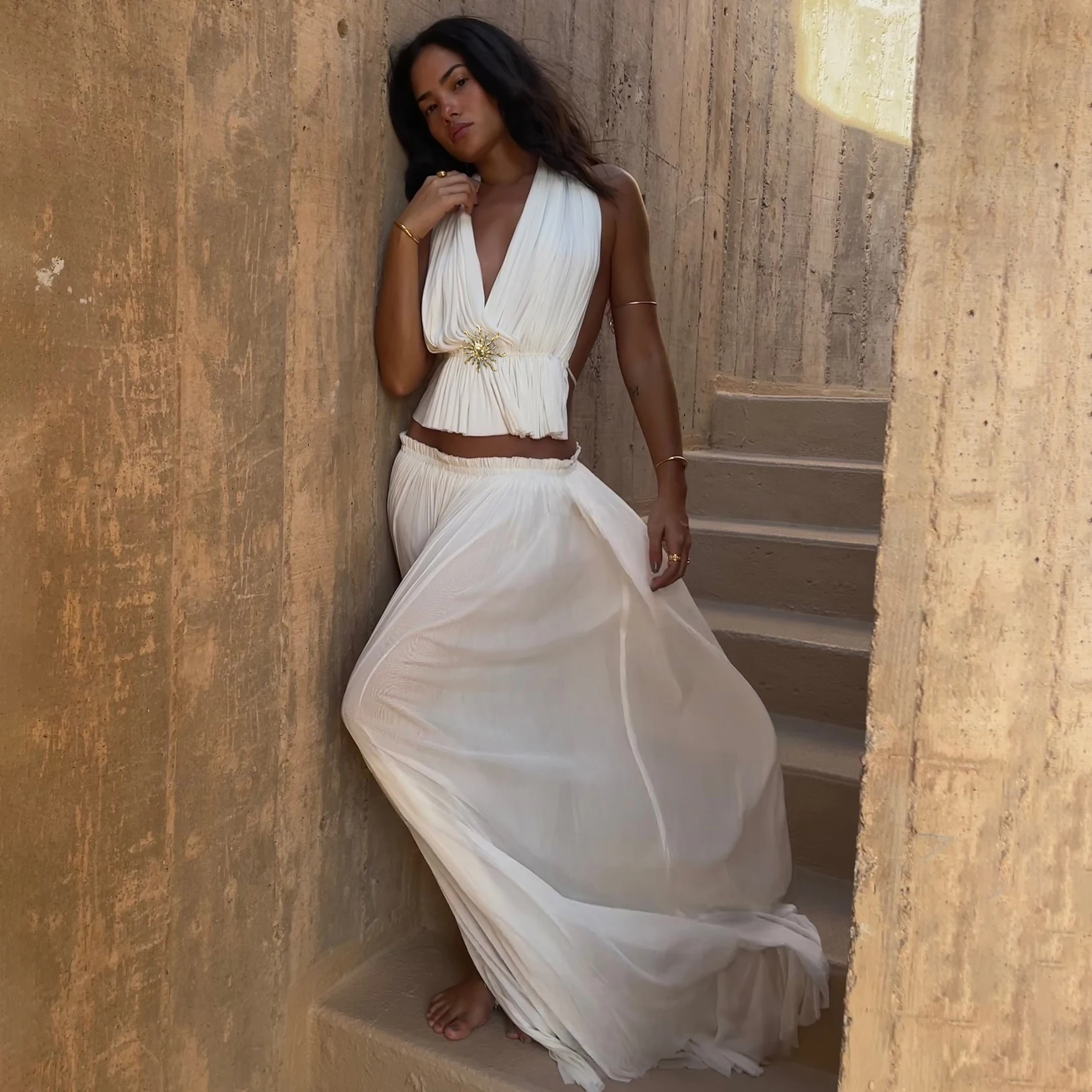 3Pcs White Swimsuit Women Sexy Swimwear Female Halter Bikini Push Up Biquini Long Skirt Deep V Bathingsuit Bodysuit Beachwear
