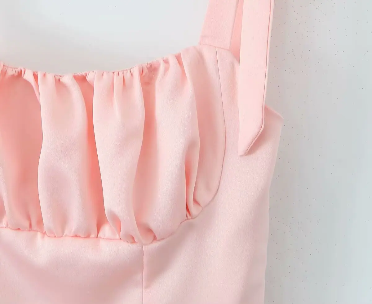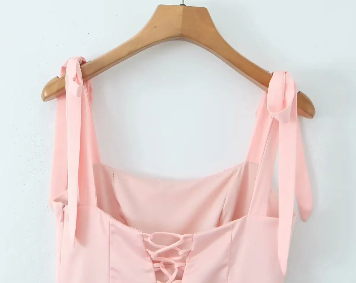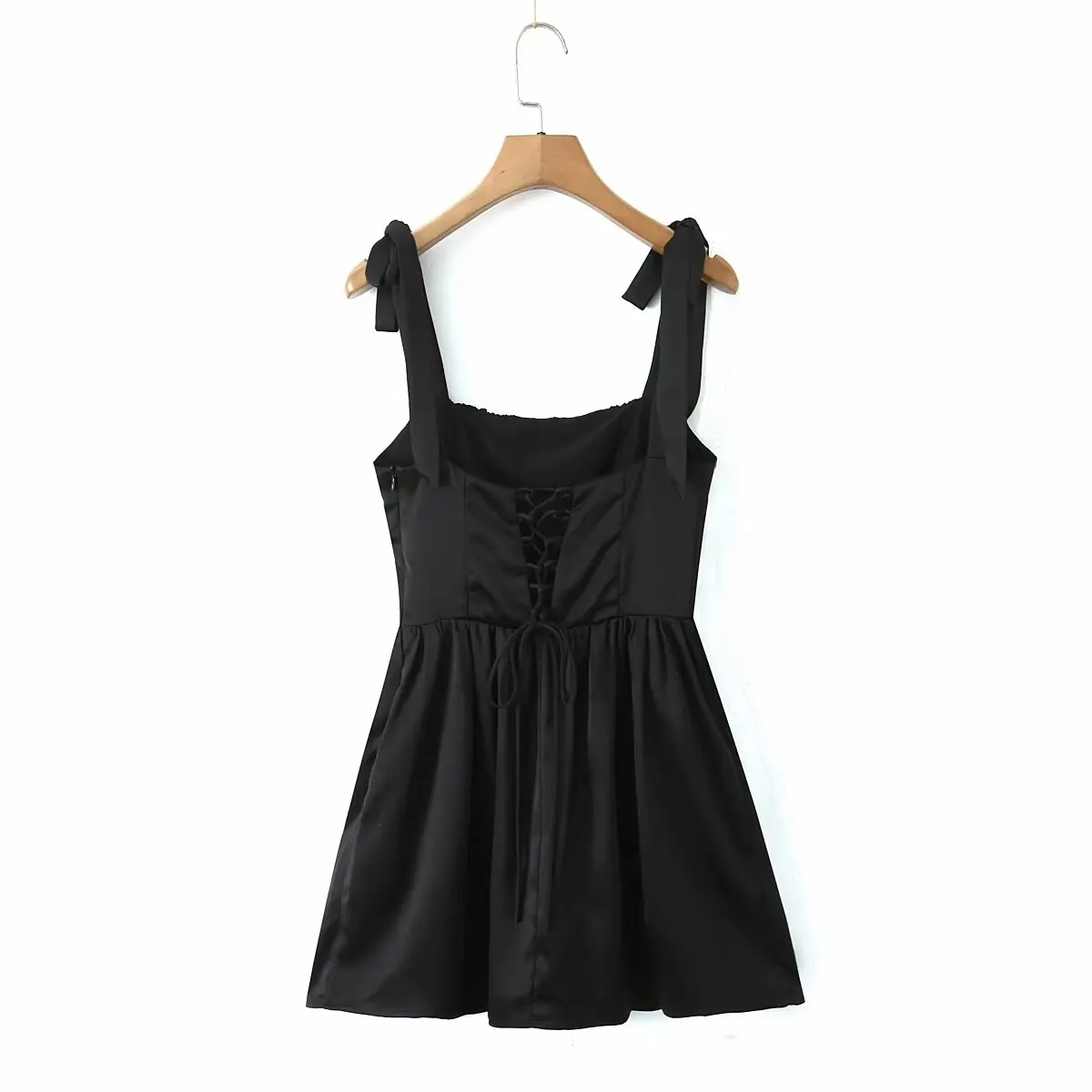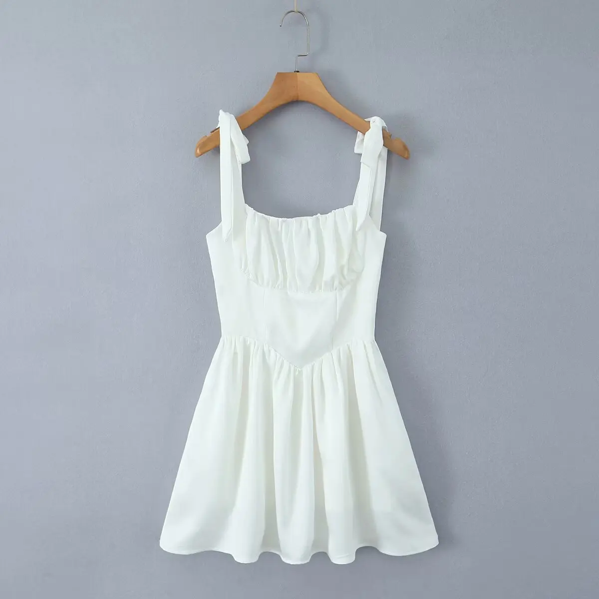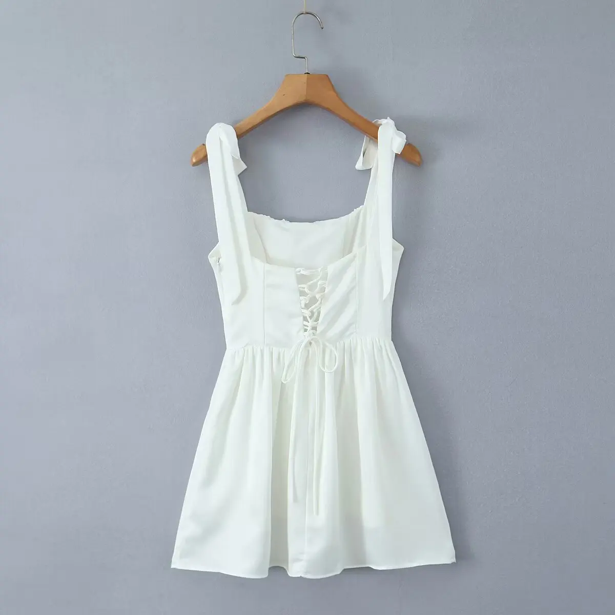4 Color Sexy Spaghetti Straps Mini Dress Women Low Waist A-line Holiday Summer Party Dresses French Style Lace Up Robe
