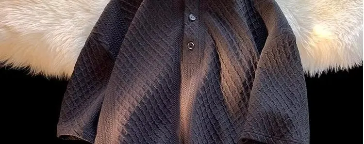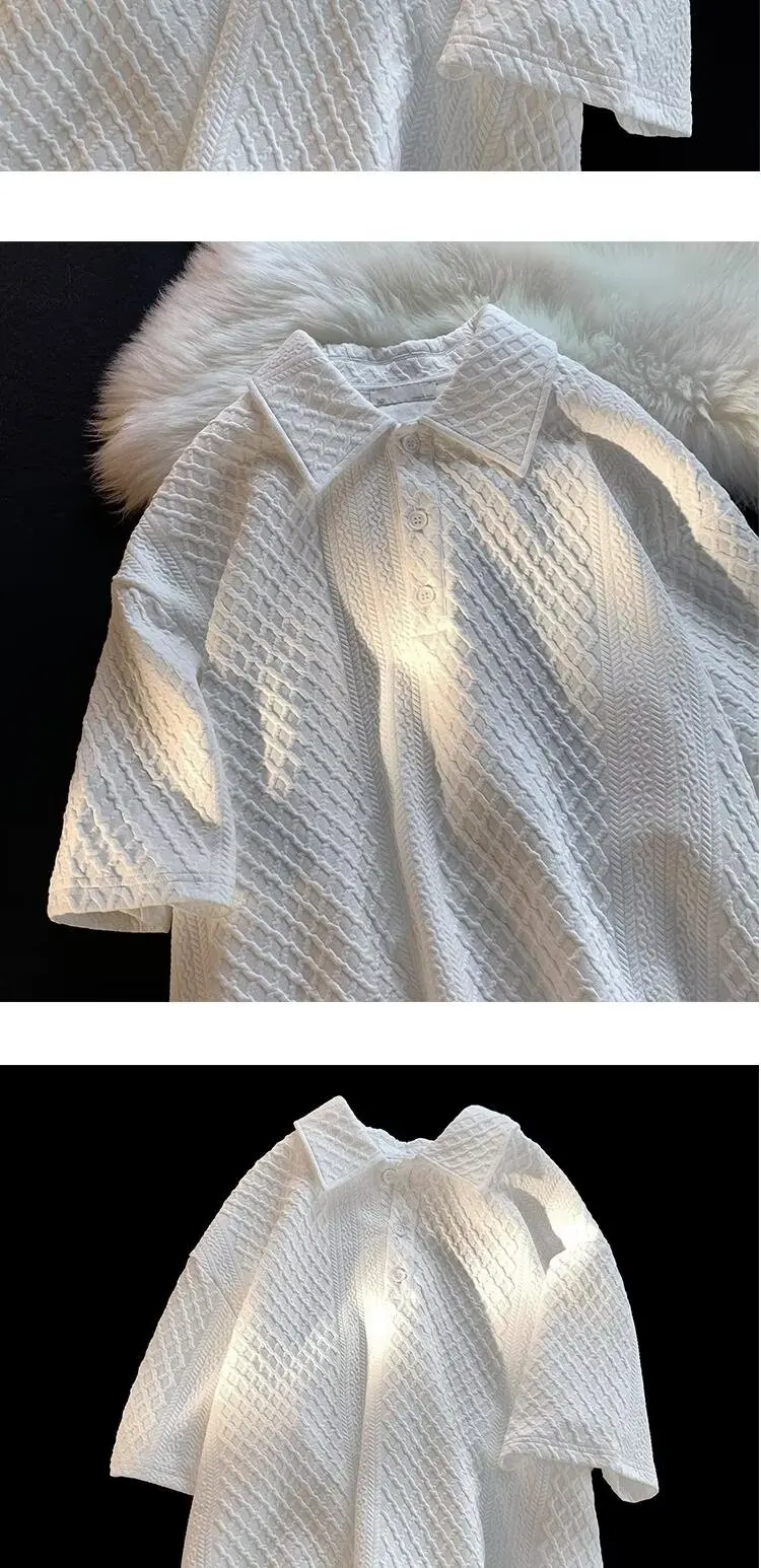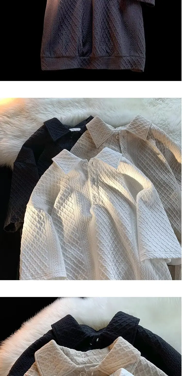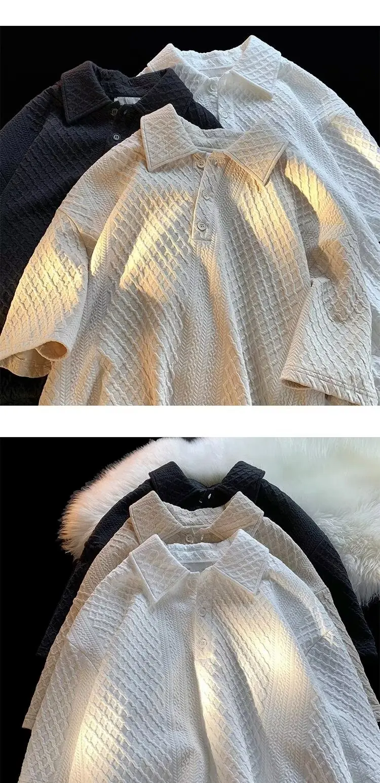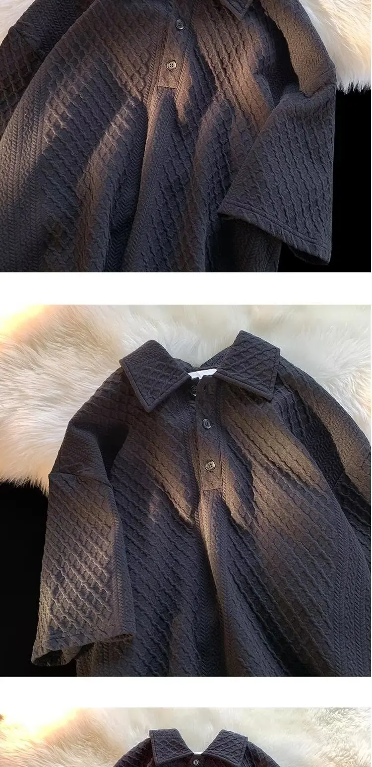 American Style Shoulder Polo Shirt Short Sleeved Men's Heavyweight Texture Collar T-shirt Design Versatile Seven Quarter Sleeves