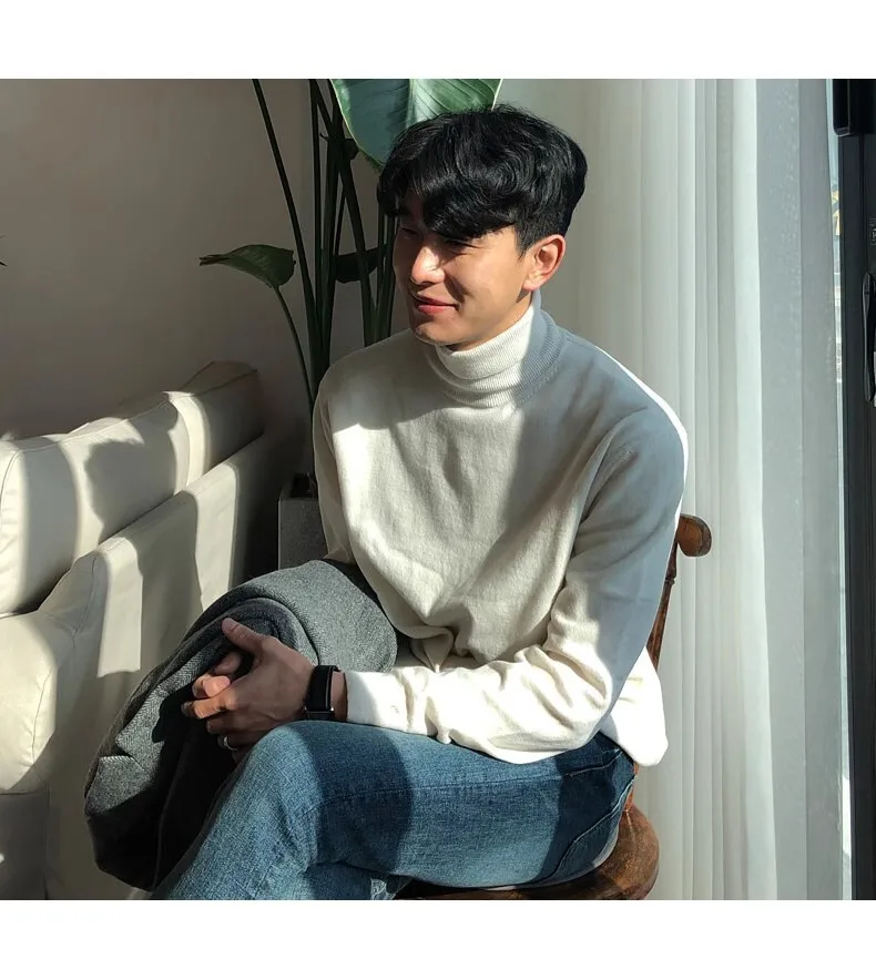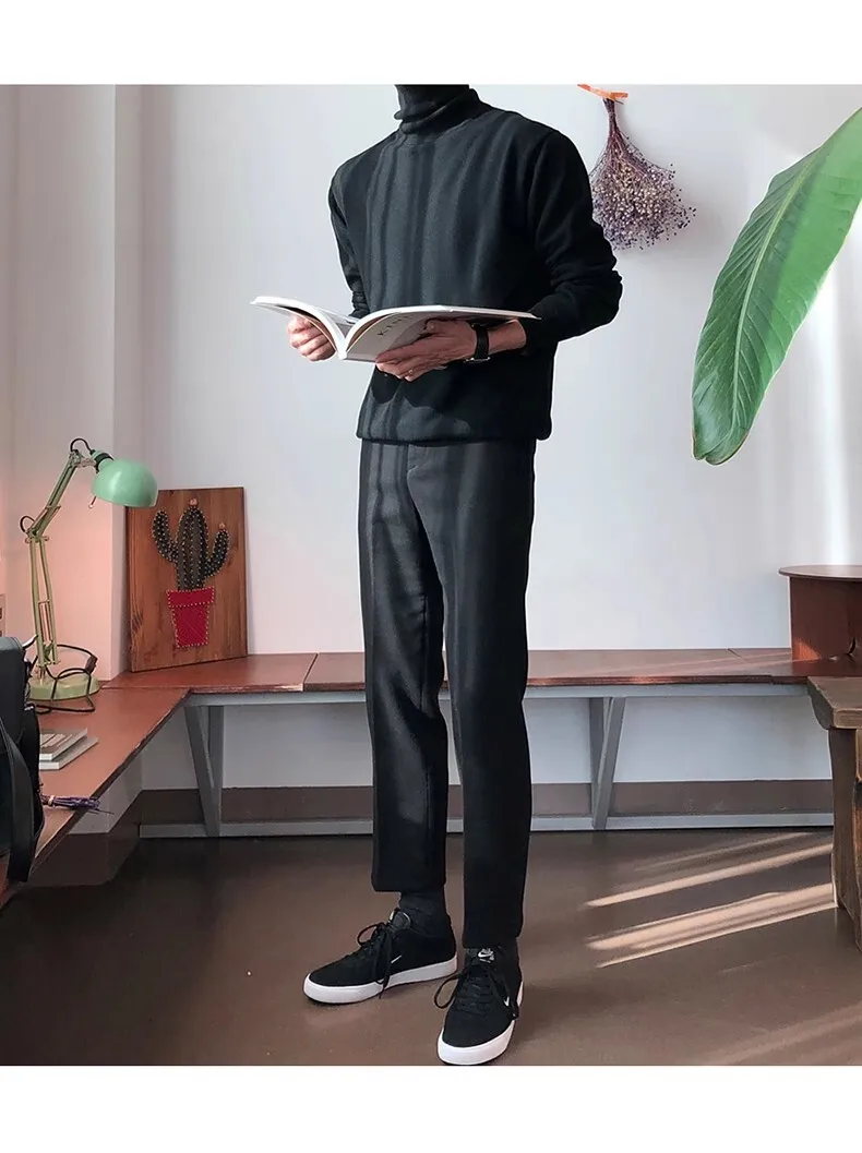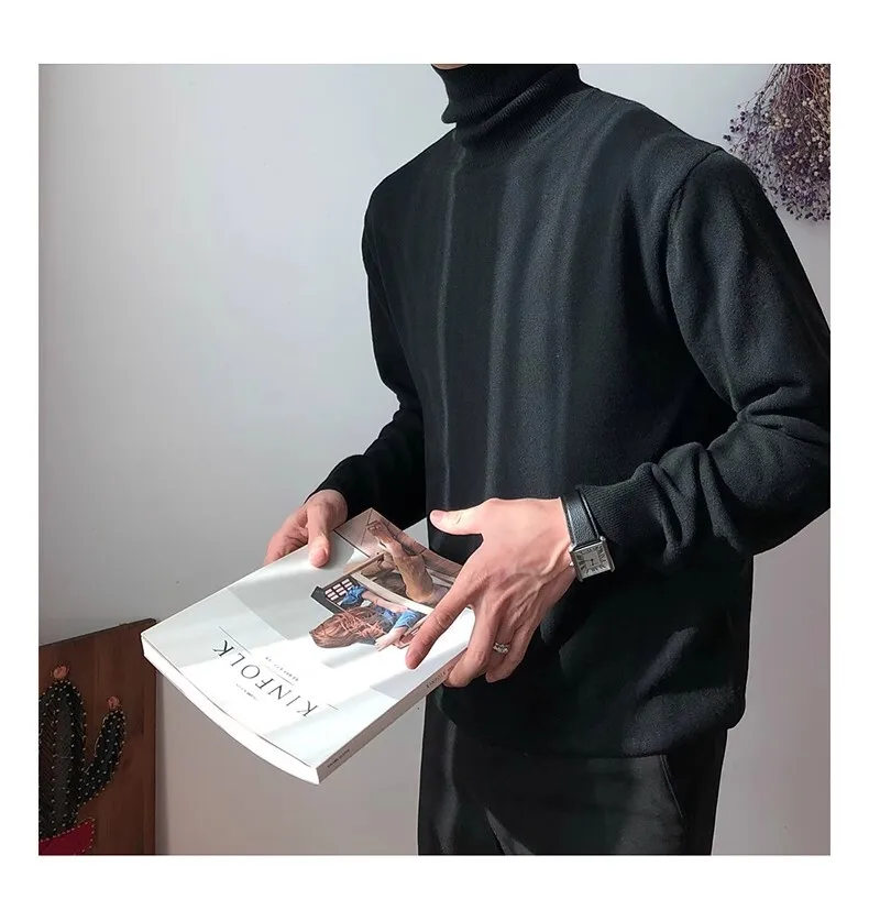 Autumn High Neck Sweater Men Warm Black White Slim Knit Pullover Men Korean Casual Long Sleeved Sweater Mens Jumper Clothes