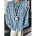 Autumn Long Sleeved Shirt Men Fashion Retro Plaid Shirts Men Japanese Streetwear Loose Casual Shirt Men Large Size 4XL