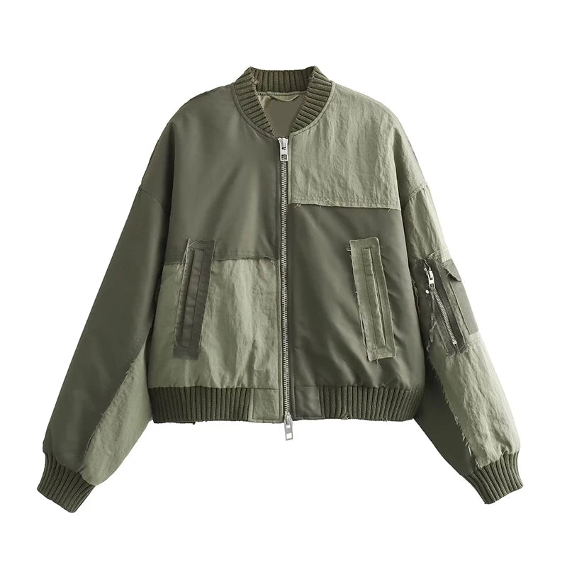 Autumn Patchwork Bomber Jacket Women Zip Oversize Jacket Woman Long Sleeve Cropped Jackets for Women Overcoat