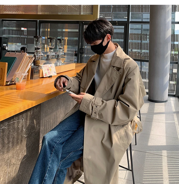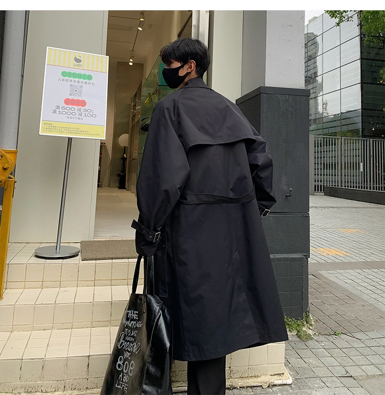 Autumn Trench Coat Men Oversized Fashion Khaki Black Long Coat Men Streetwear Korean Loose Windbreaker Jacket Mens Overcoat