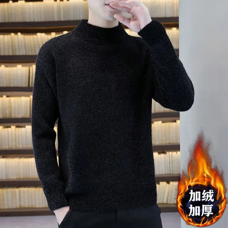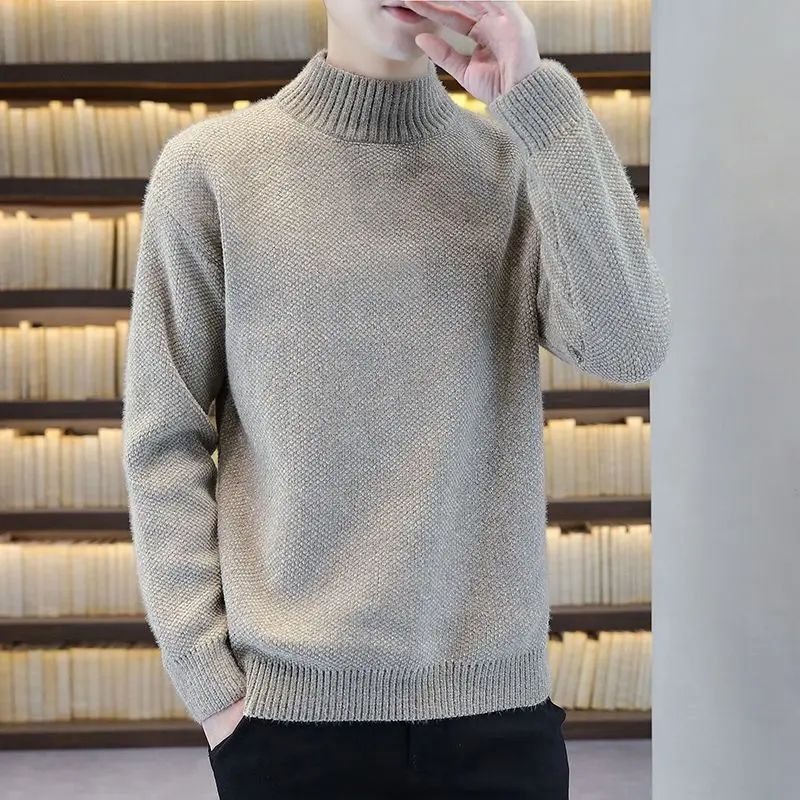 Autumn Winter New Fashion Long Sleeve Half High Collar Solid Pullovers Men's Clothing All-match Knitting Korean Simplicity Tops