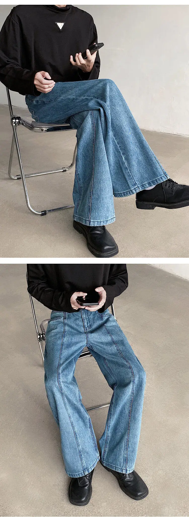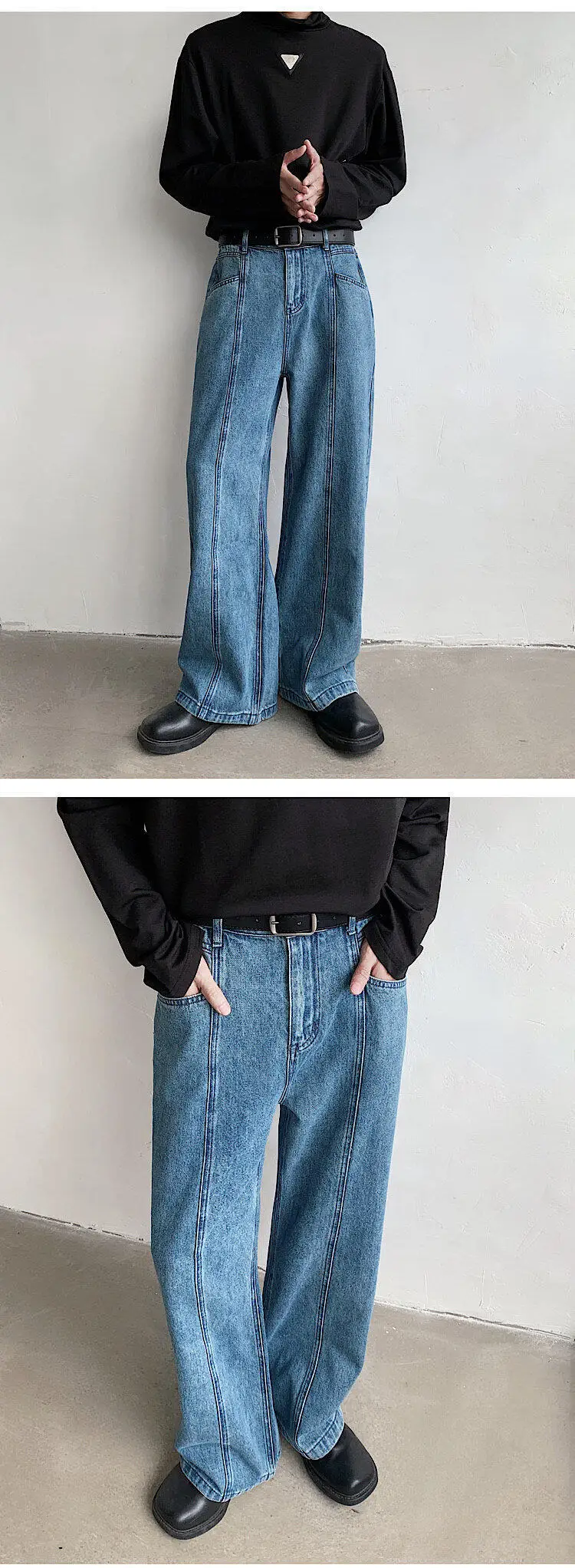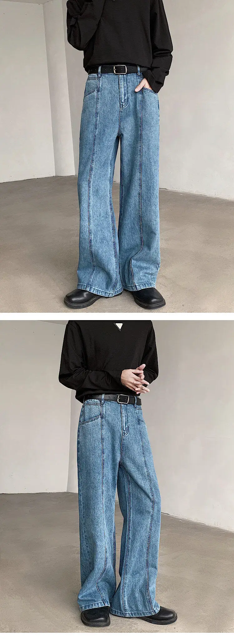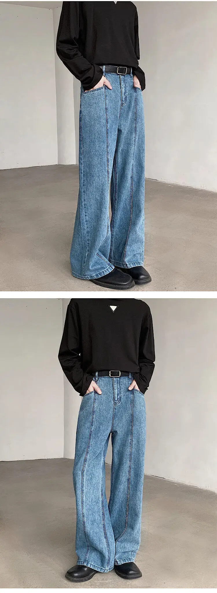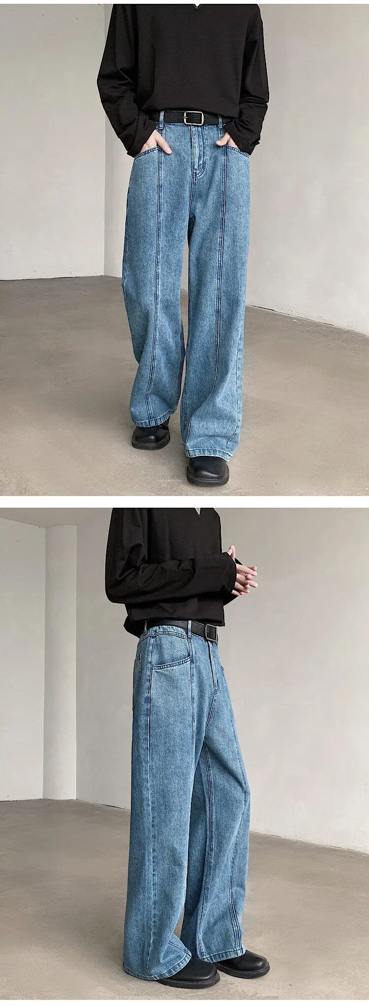 Baggy Blue Jeans Men Oversized Retro Straight Jeans Men Streetwear Korean Loose Wide Leg Jeans Mens Denim Trousers M-2XL