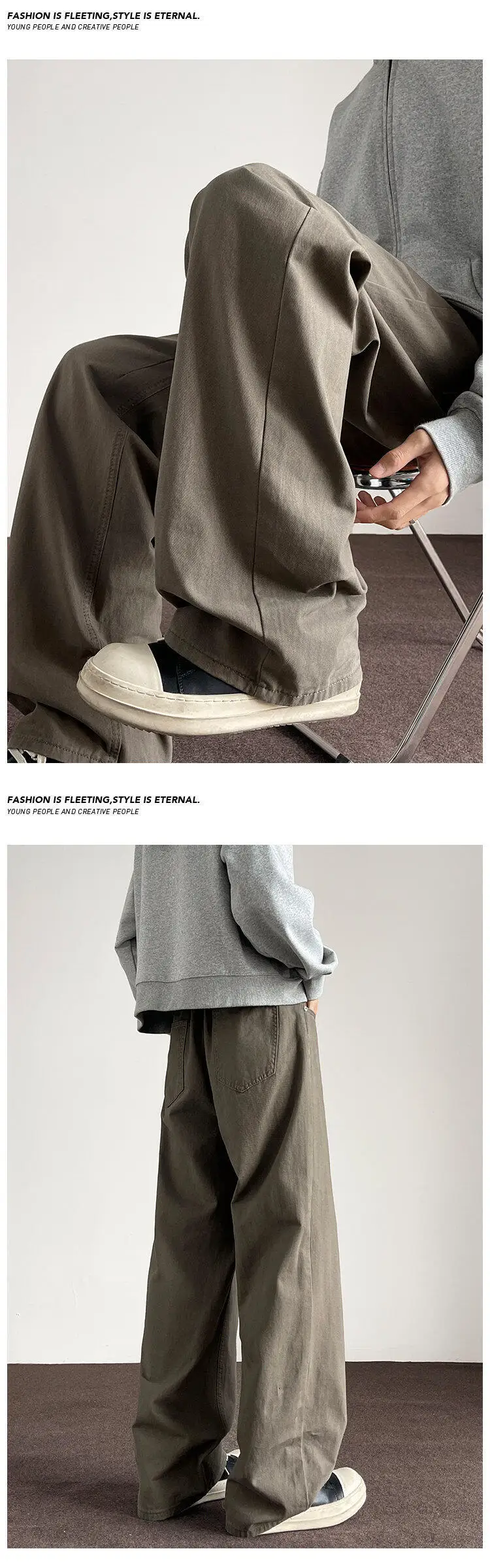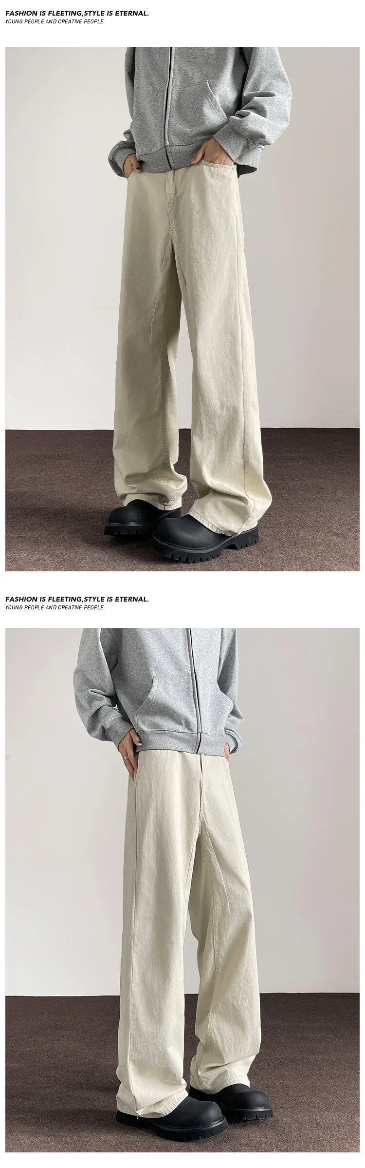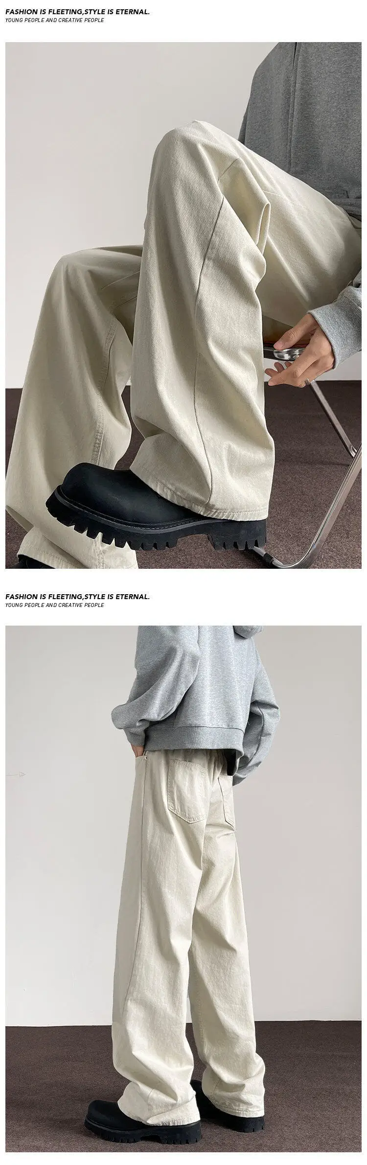 Beige Casual Pants Men Fashion Retro Straight Pants Men Streetwear Korean Loose Black Pants Mens Vintage Trousers M-3XL