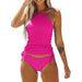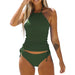 Design:Two-piece swimming suit. Solid color, neck hanger top with high waist, solid color hip brief.