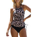 Bikini Set Women Summer Swimming Suit Solid Color/Leopard Print Sleeveless Tops and High Waist Shorts Swimwear