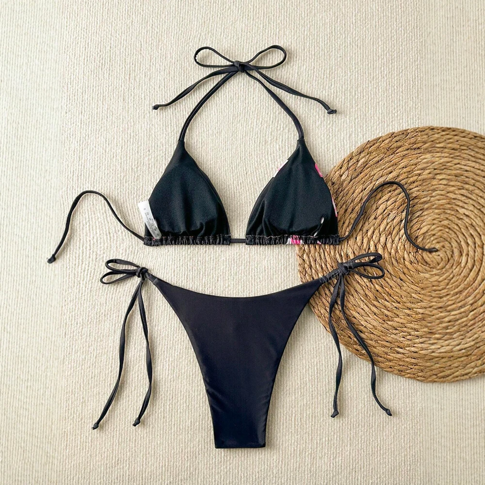 Bikinis Set Summer Fashion Sexy Sleeveless Halter Neck Floral Thong Beach Style Bikinis Set For Women