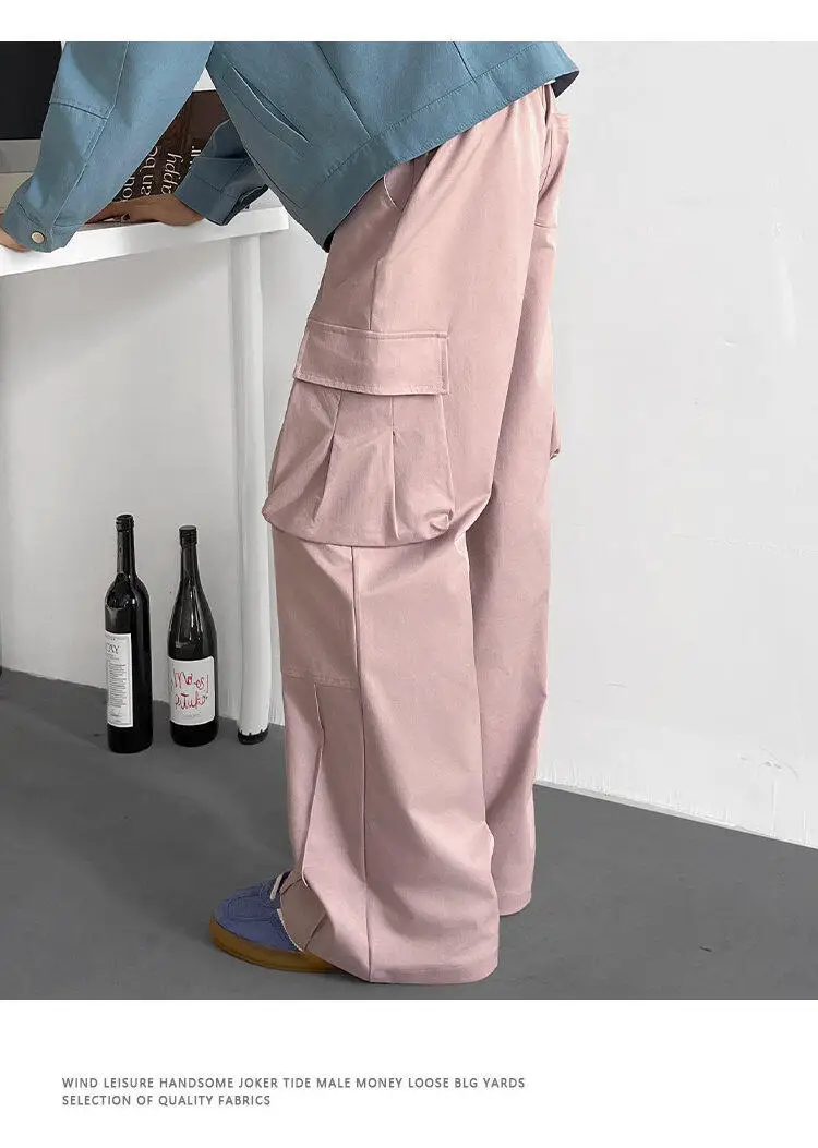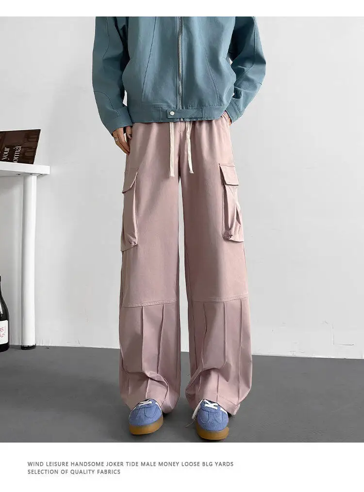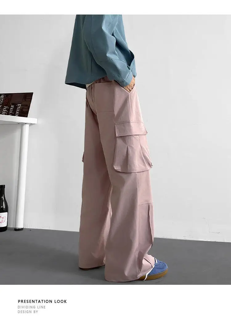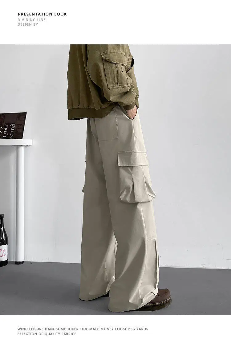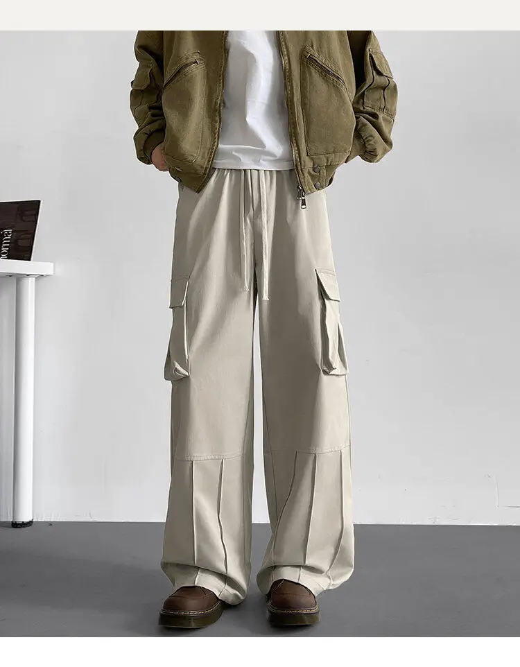 Black Casual Pants Men Retro Pocket Cargo Pants Men Japanese Streetwear Hip-hop Loose Wide Leg Pants Mens Vintage Trousers