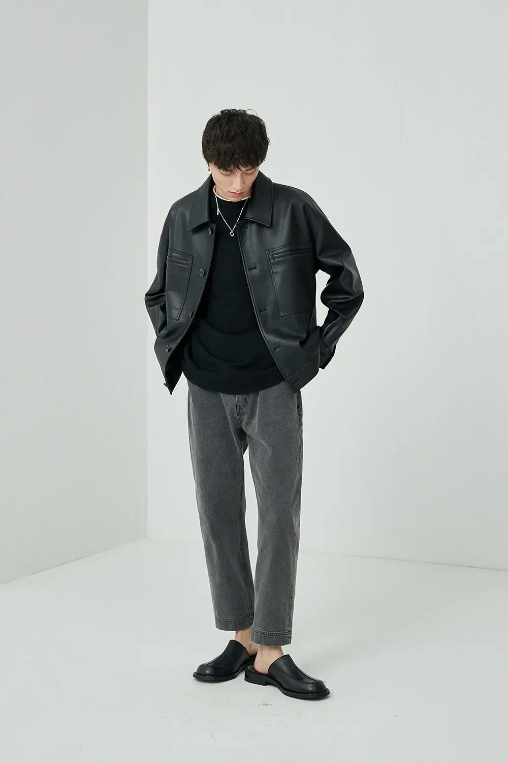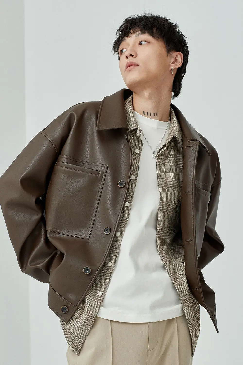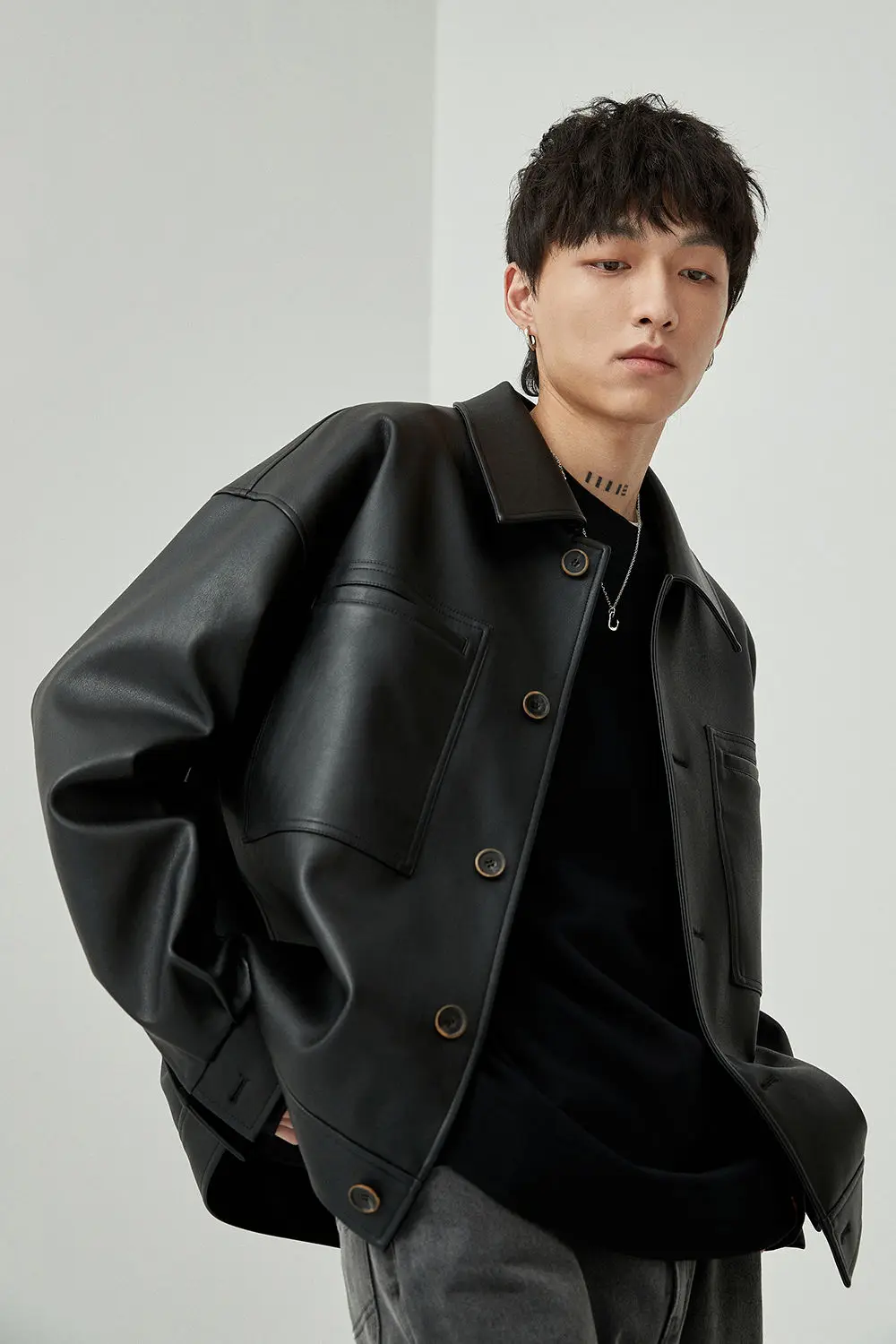 Black Leather Jacket Men Autumn Korean Casual Loose Buttons PU Leather Jacket for Men Luxury New Short Motorcycle Jacket