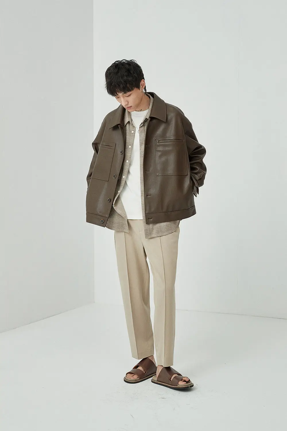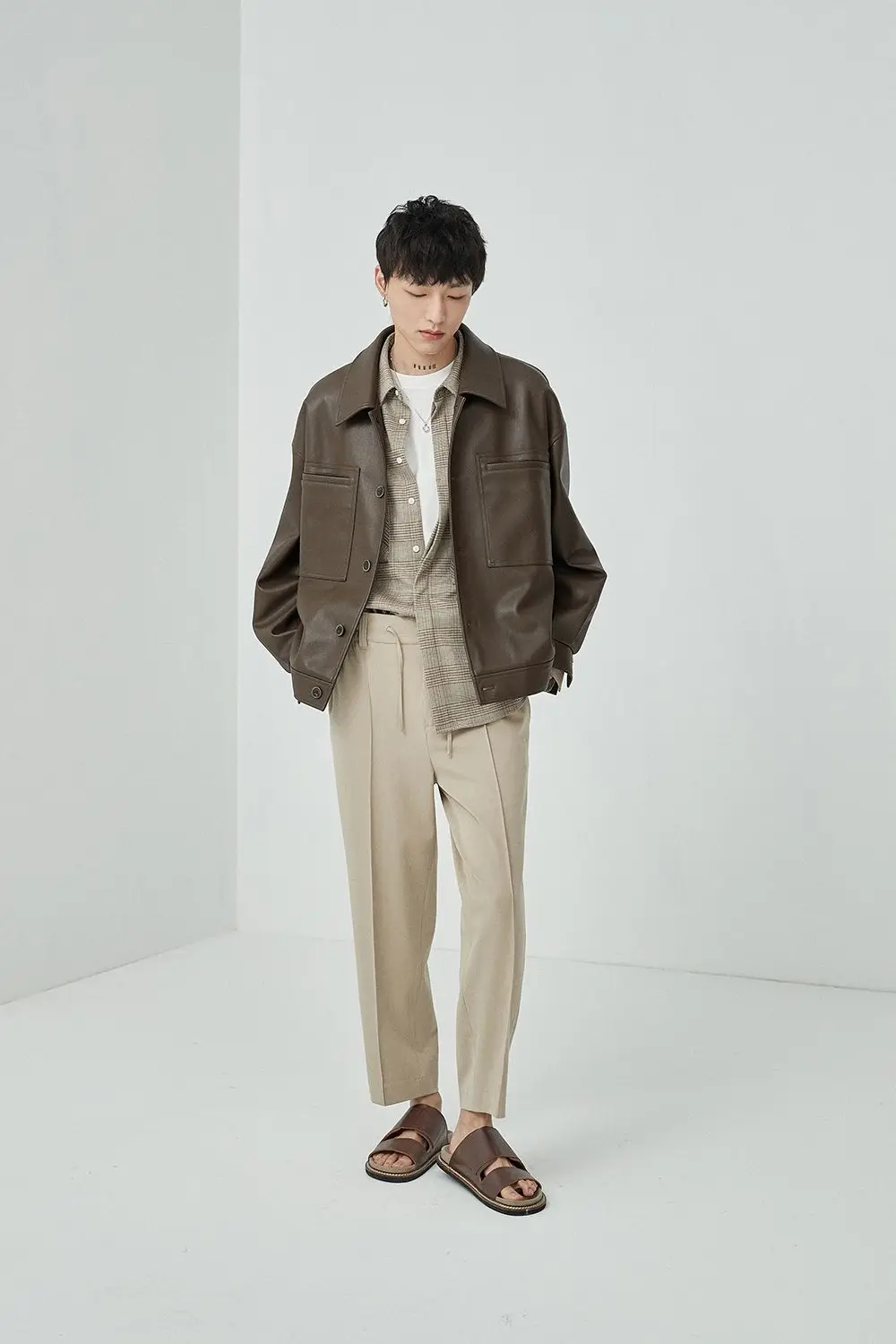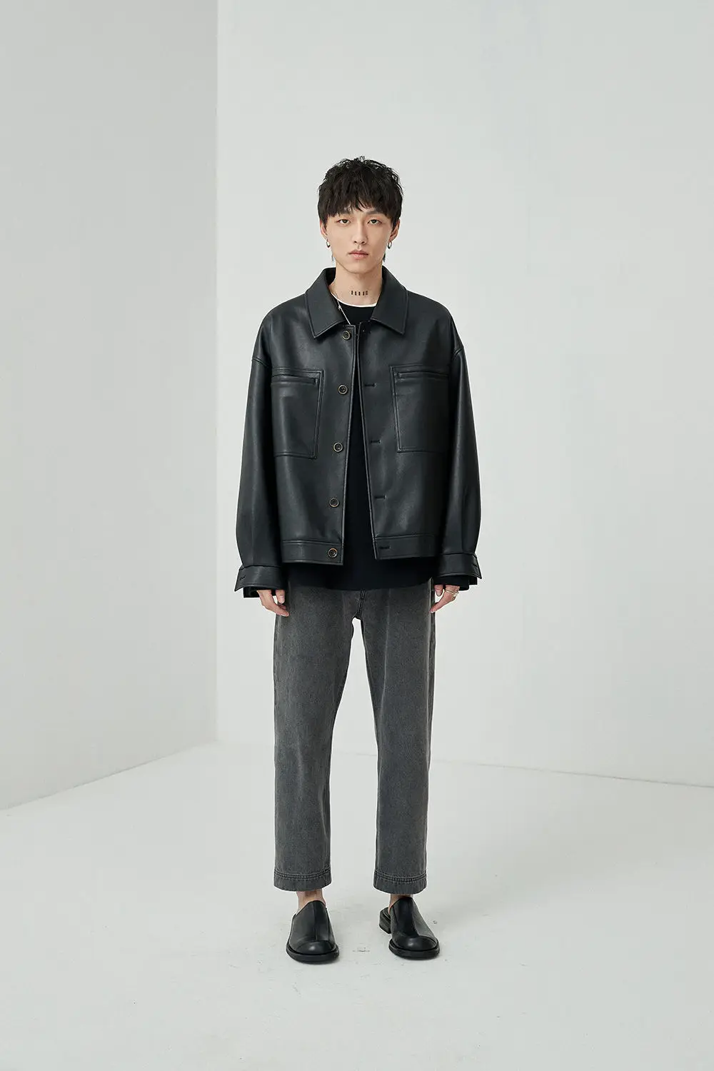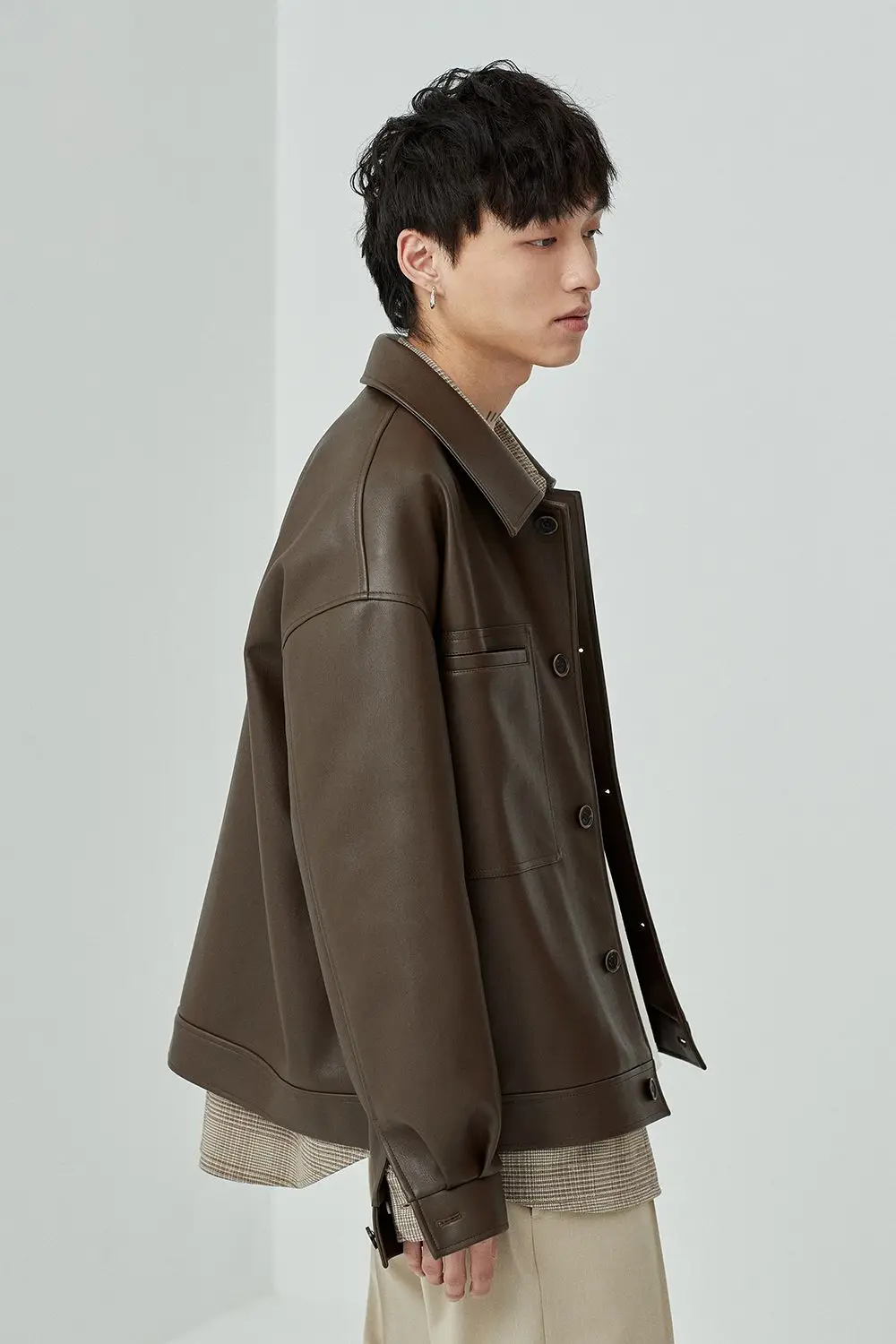 Black Leather Jacket Men Autumn Korean Casual Loose Buttons PU Leather Jacket for Men Luxury New Short Motorcycle Jacket