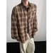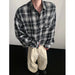 Black Long Sleeved Shirt Men Retro Plaid Shirt Men Japanese Streetwear Loose Casual Shirt Mens Fashion Shirts Plus Size 5XL
