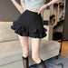 Black Ruffled Mini Skirt Women Y2K Summer Sweet Preppy Casual Shorts Skirts Korean High Waist Folds A Line Skirts