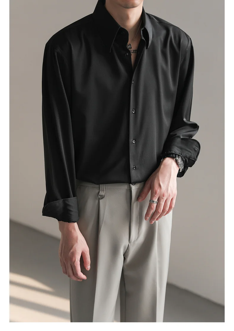 Black White Shirt Men Fashion Social Mens Dress Shirt Korean Loose Long Sleeved Shirt Mens Office Formal Shirts Ice Silk M-2XL