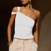 Blouses Spring Summer Fashion Skinny Fit Asymmetrical Plain Sleeveless One-Shoulder Casual Blouses For Women