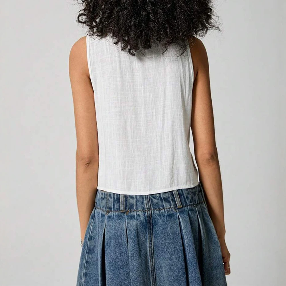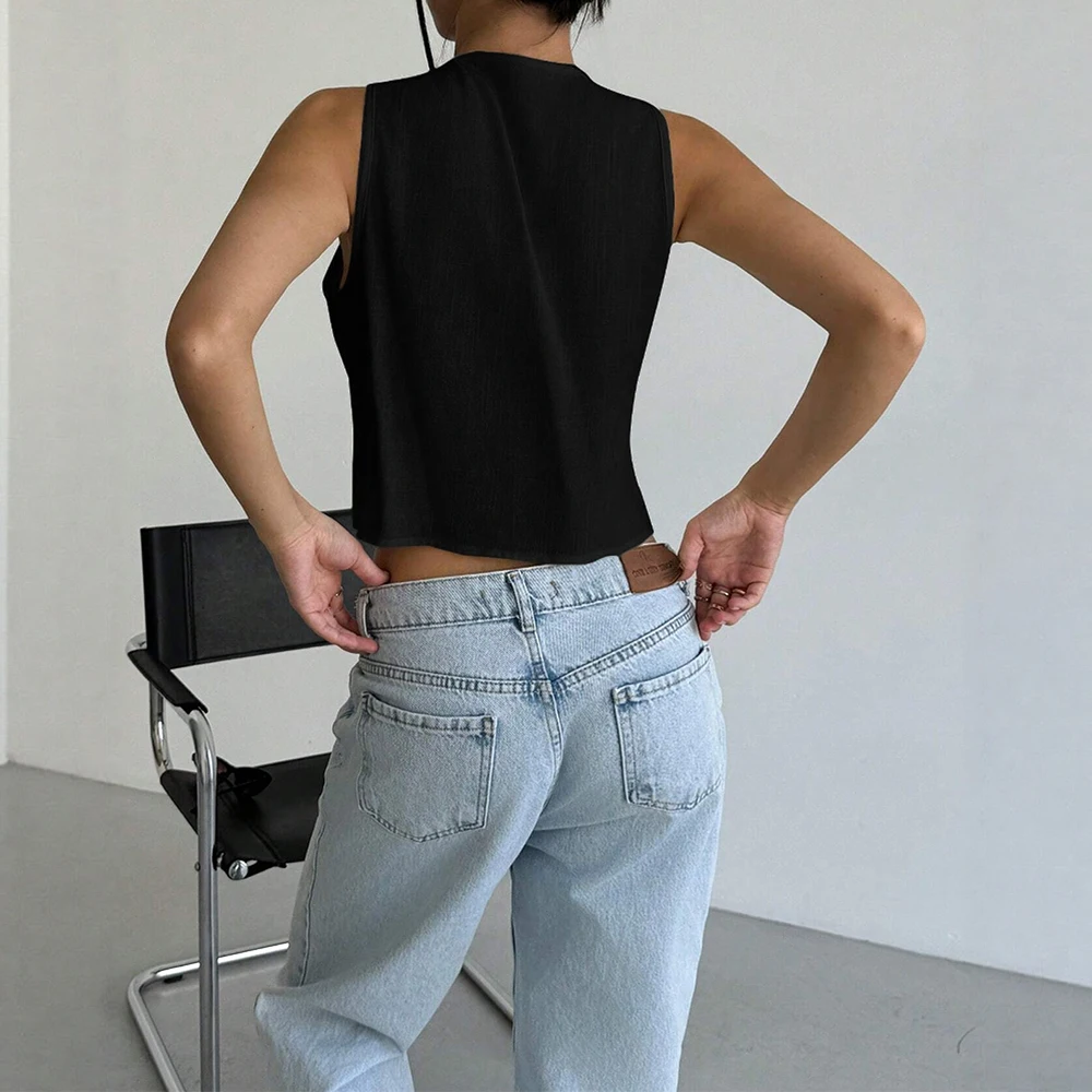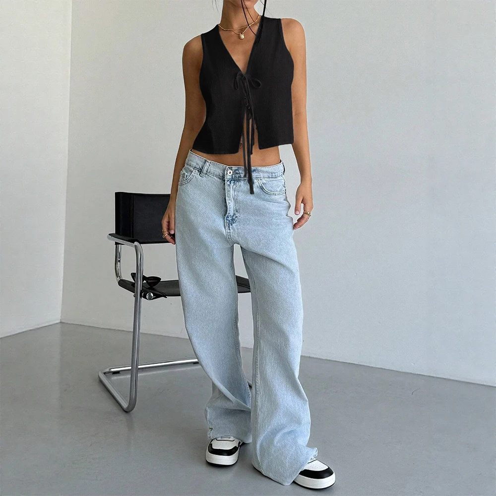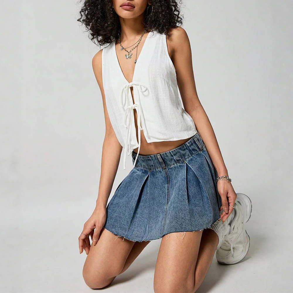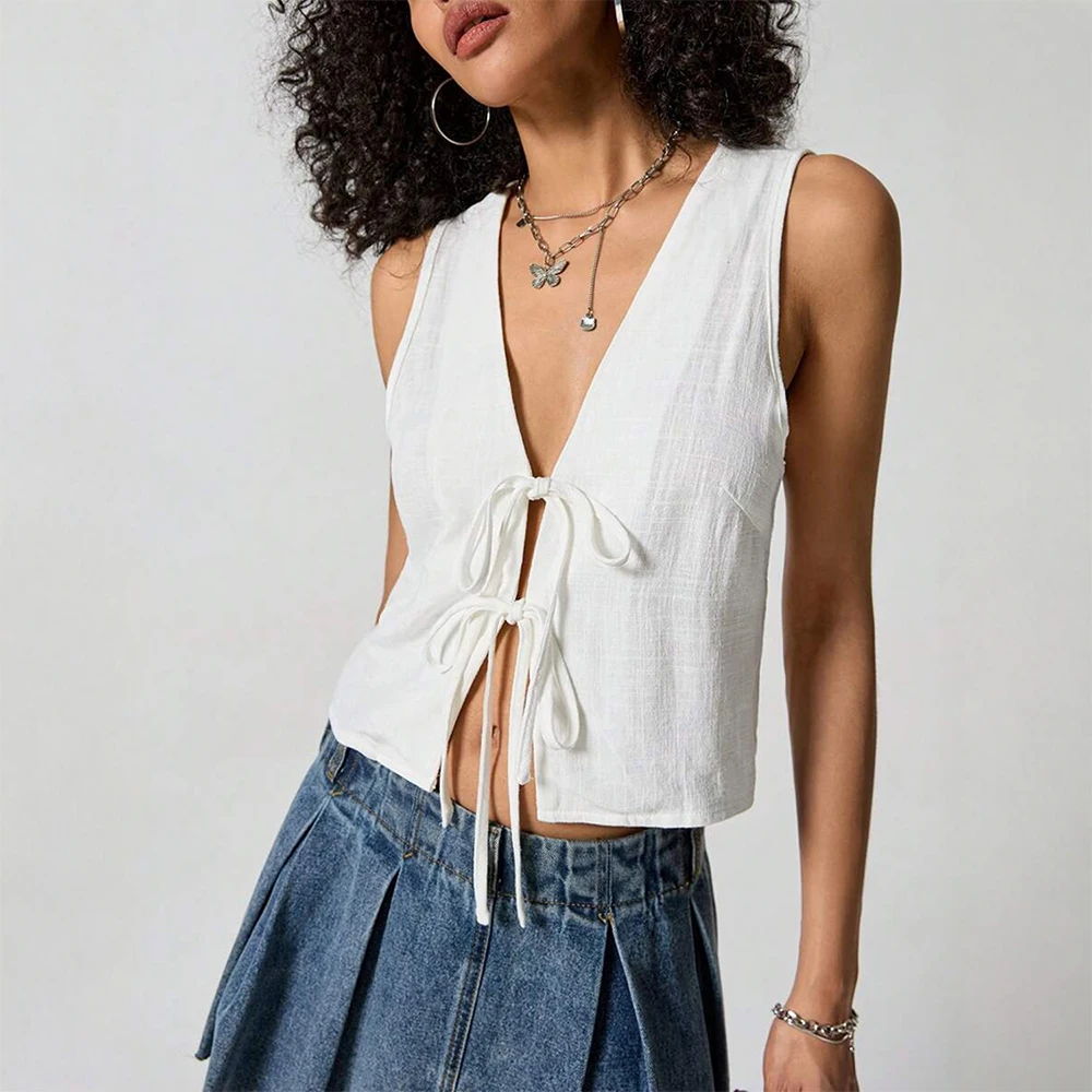 Blouses Spring Summer Fitting Slim Casual Lace-Up Sleeveless V-Neck Daily Blouses For Women