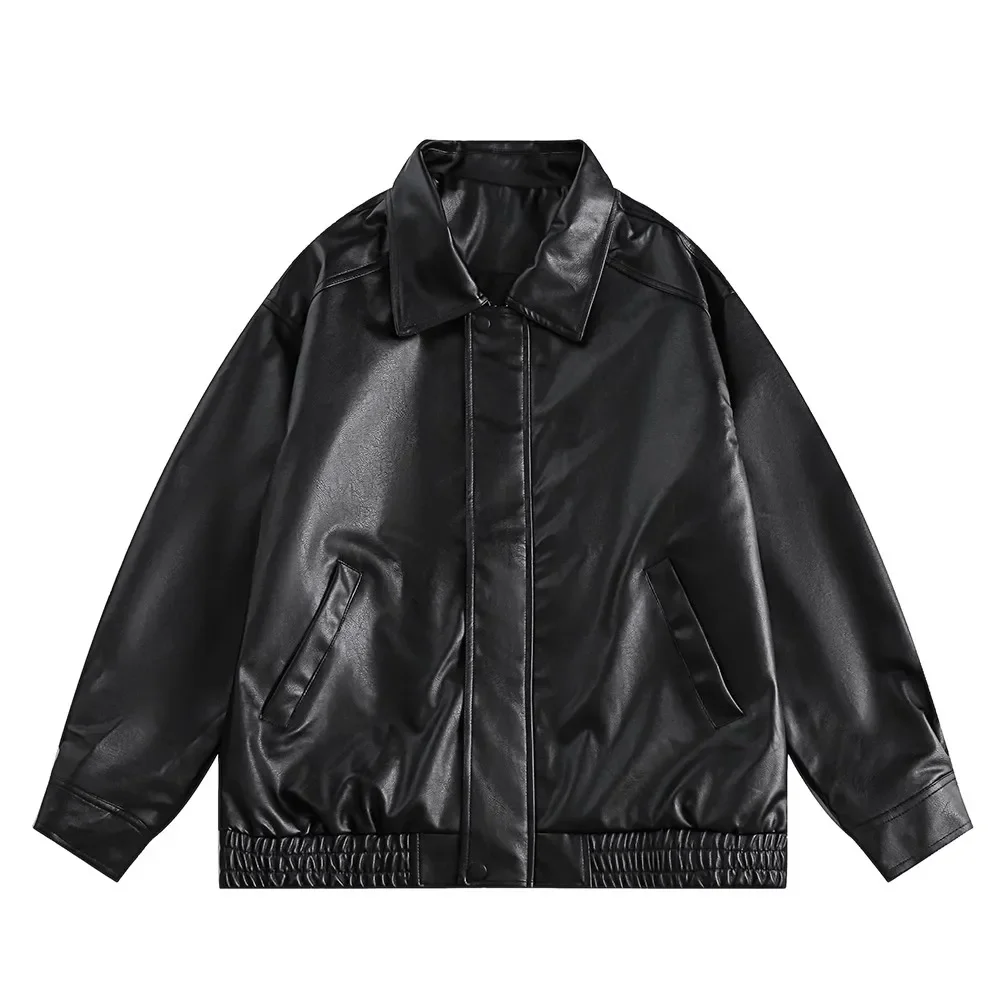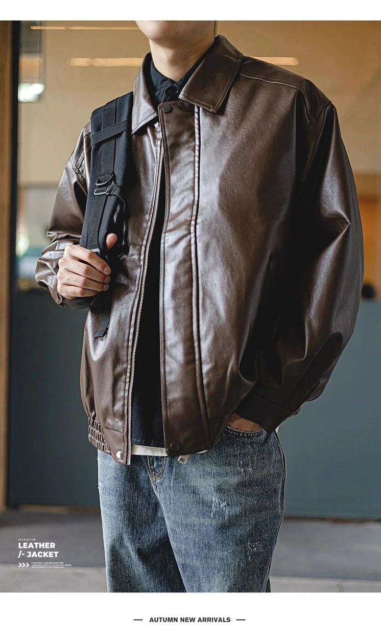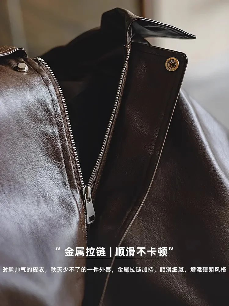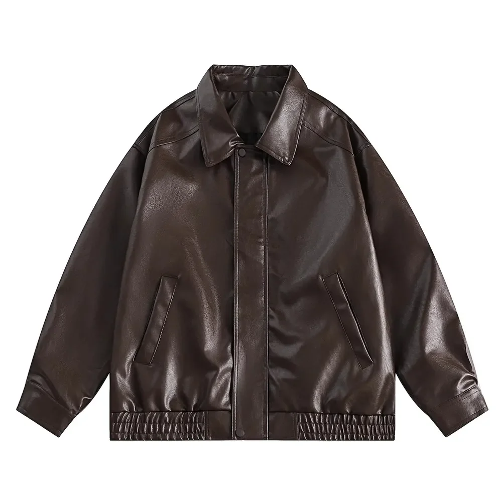 Brown PU Motorcycle Leather Jackets for Men Autumn New Lapel Zipper American Vintage Loose Maillard Leather Jacket Men Coats