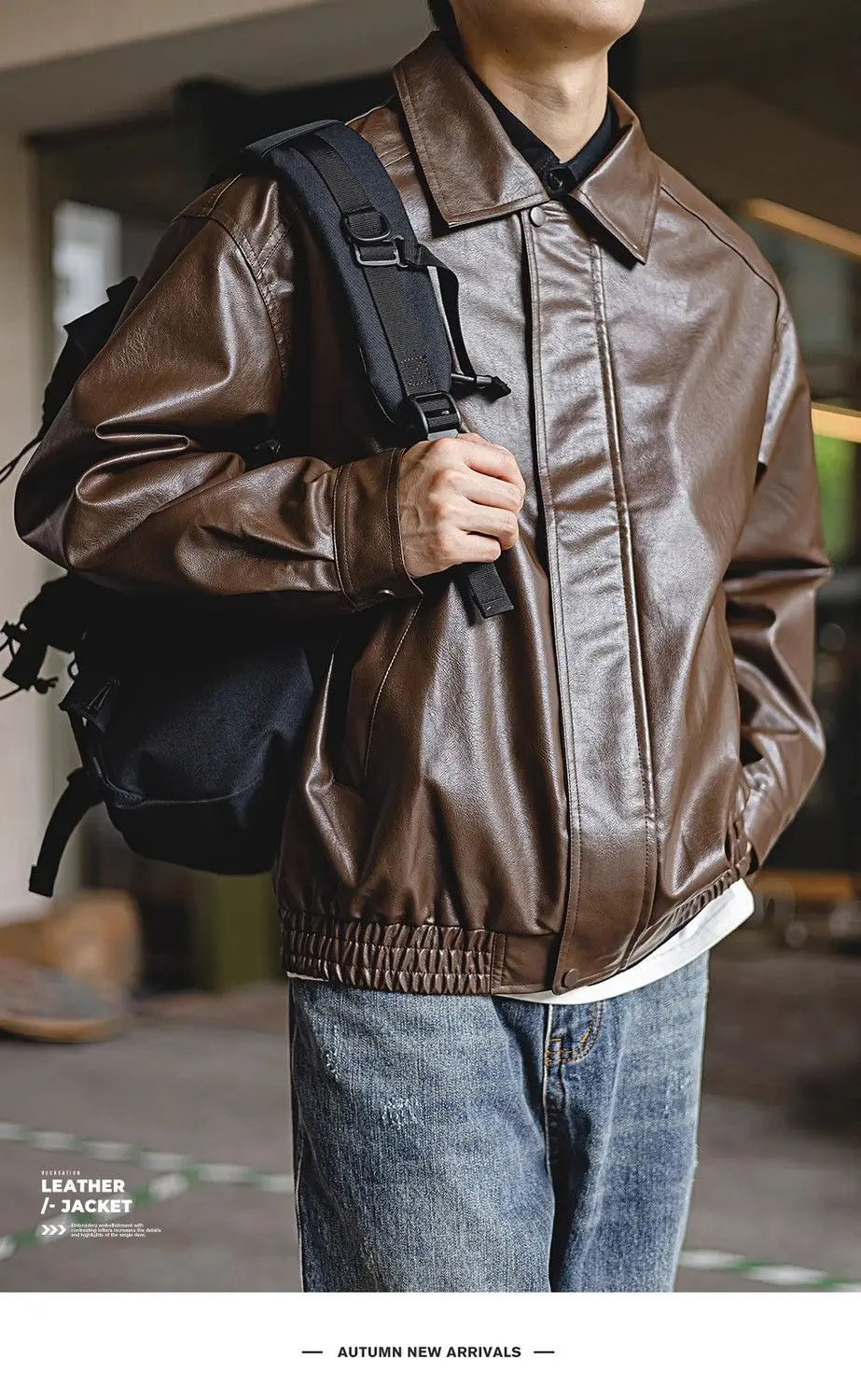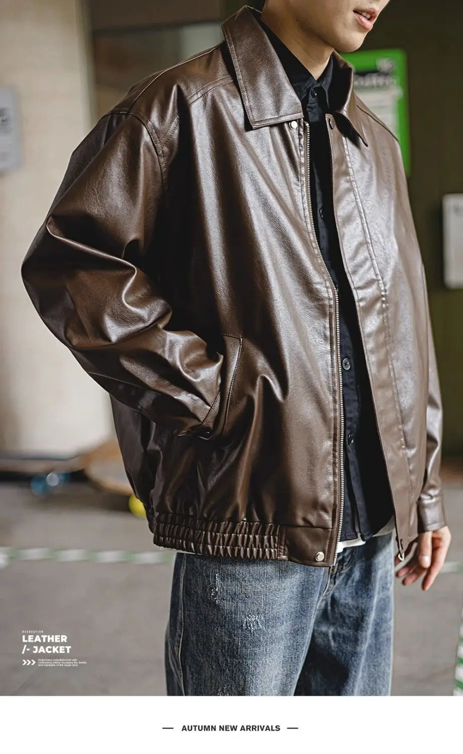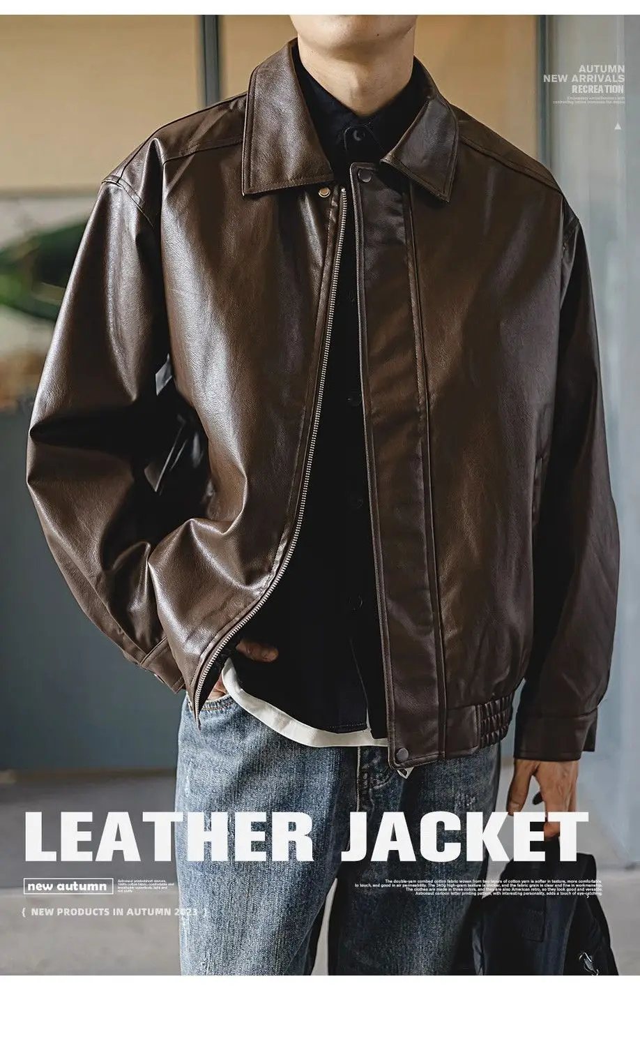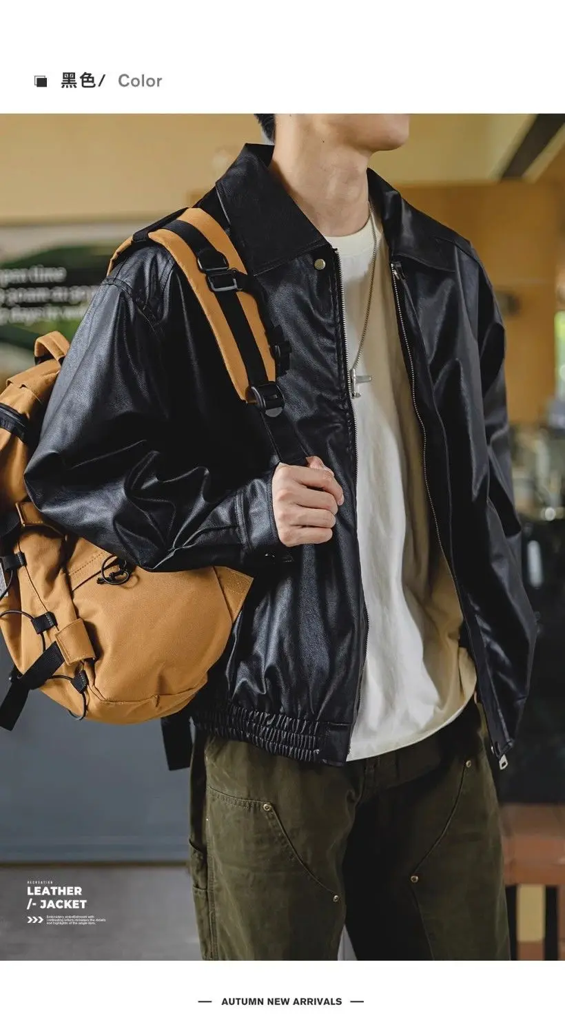 Brown PU Motorcycle Leather Jackets for Men Autumn New Lapel Zipper American Vintage Loose Maillard Leather Jacket Men Coats