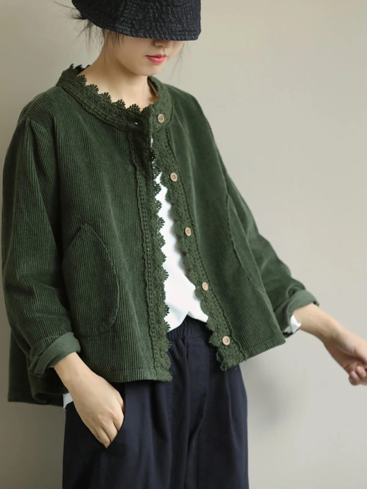 Corduroy Jackets Women Simple Retro All-match Loose Daily Autumn Korean Style Female Classic Pure Design Basic Fashion Leisure voguable