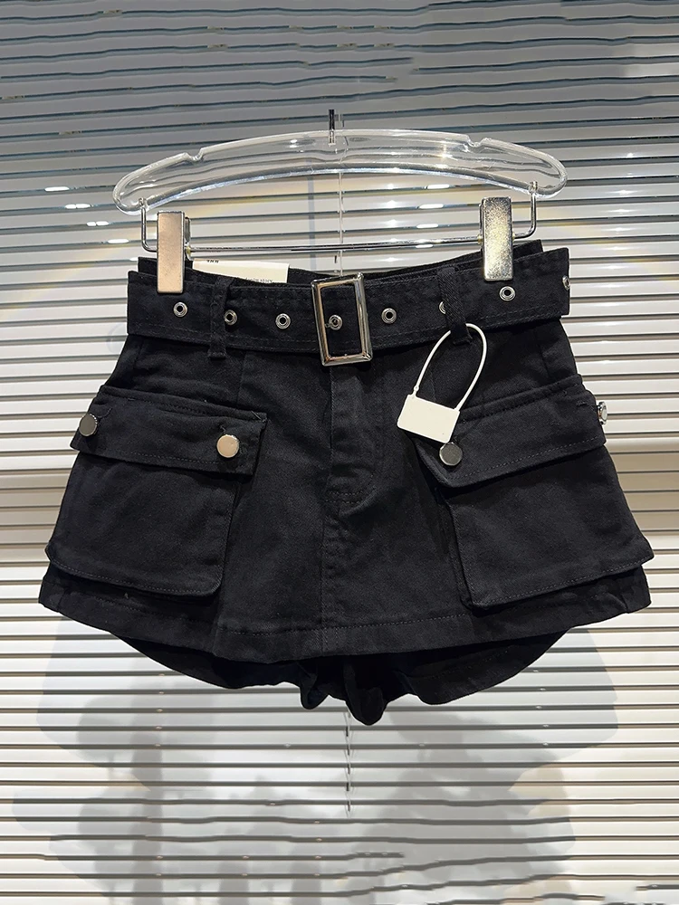 Fashion Simply Solid Color Belt Waist Shorts For Women Summer New Casual High Waist Mini Shorts Skirts Female