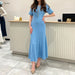 Denim Patchwork Kinitting Fashion Long Dress Tight Single Breasted Chic White Women Dress Versatile Street Summer Spring Vestido