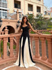 Elegant Black White Patchwork Maxi Dresses Women Fashion O-neck Long Sleeves Slim Dress New Female Evening Party Robes