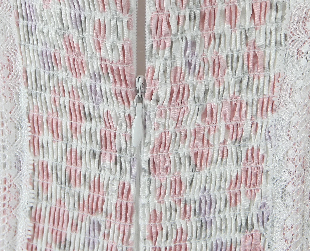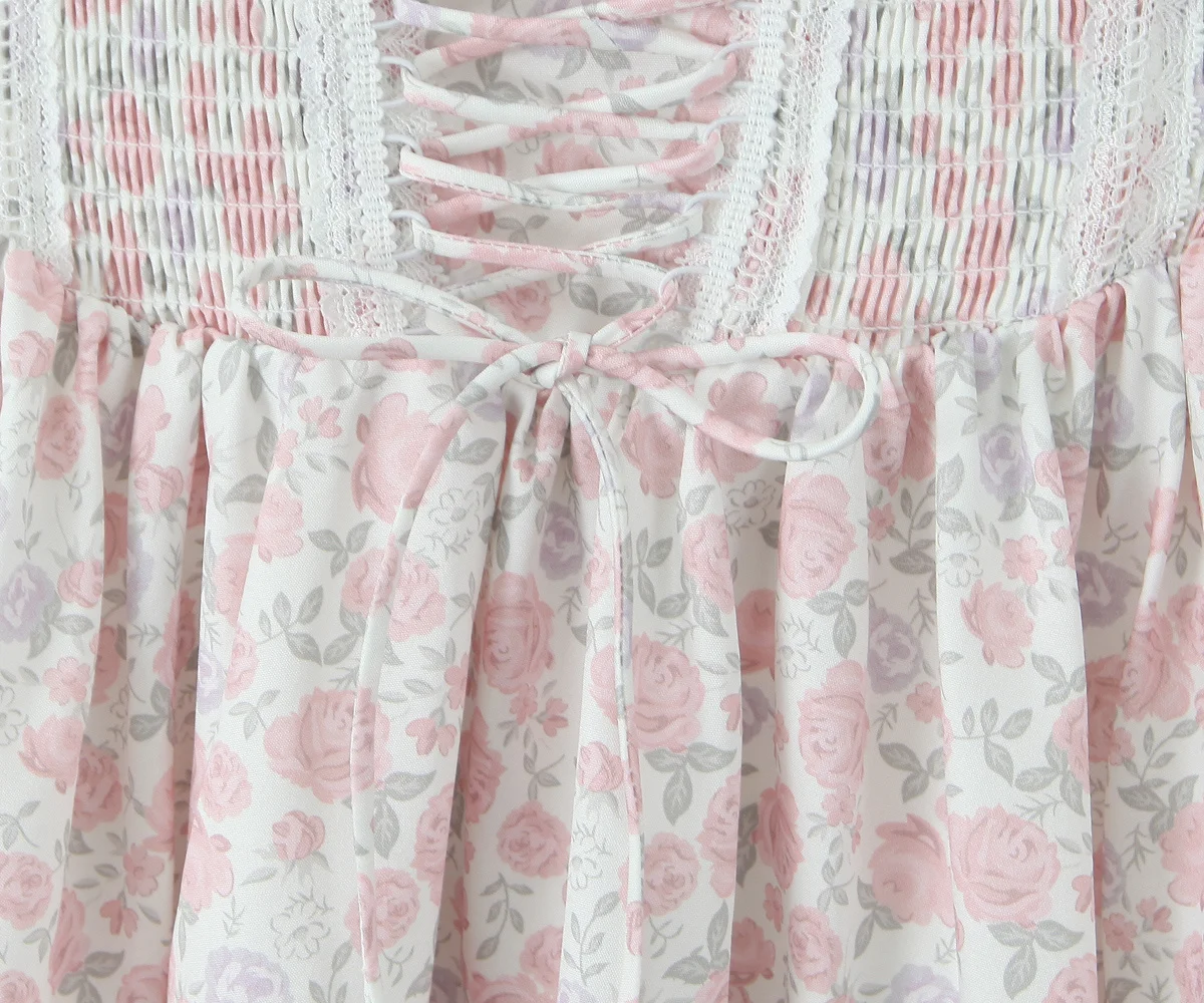 Elegant Women Floral Print Princess Sling Mini Dress Front Bandage Lace Patchwork A-line