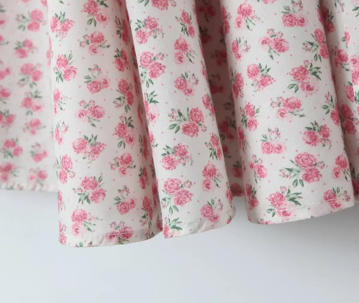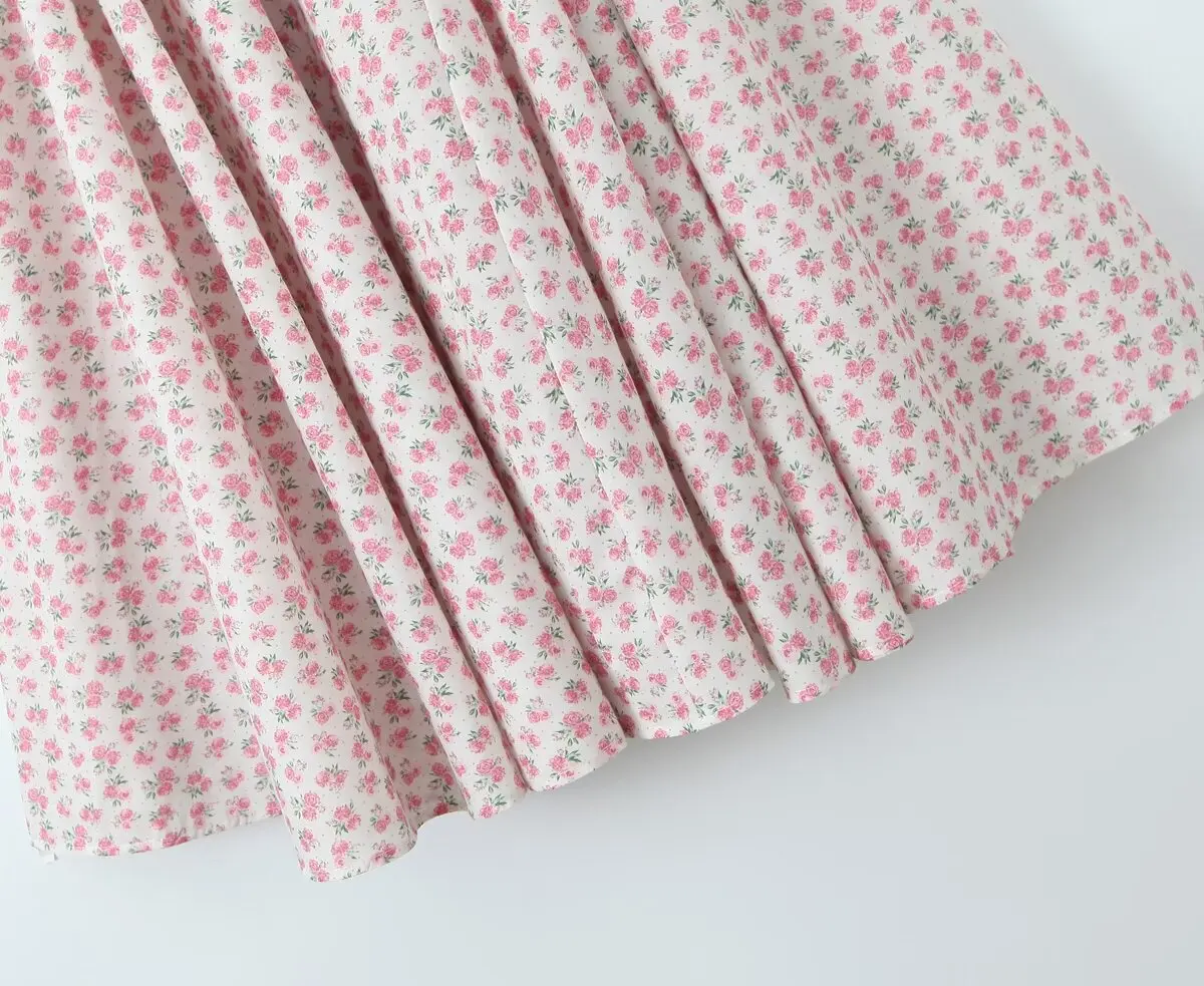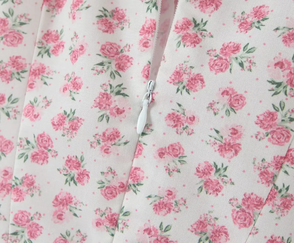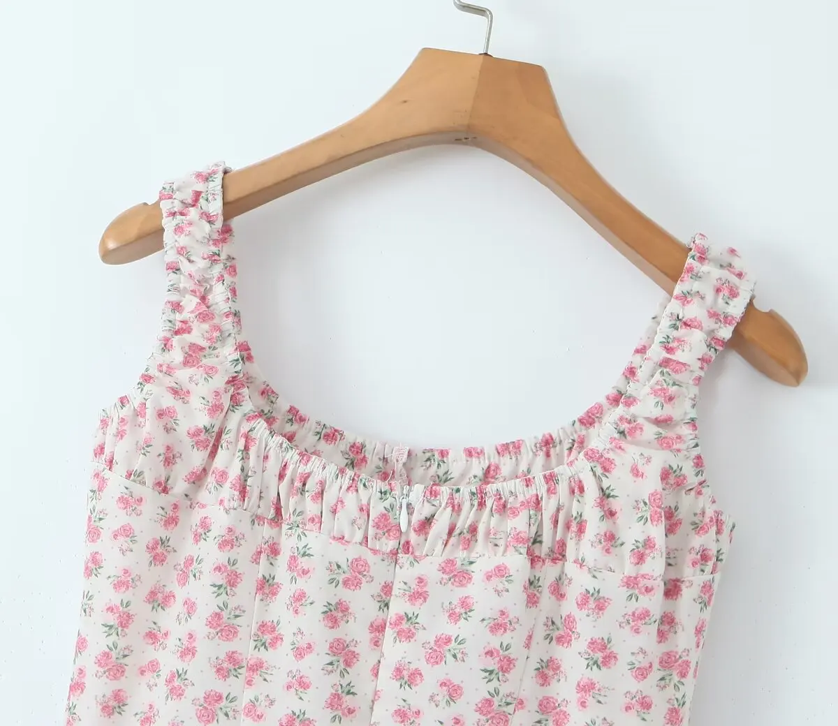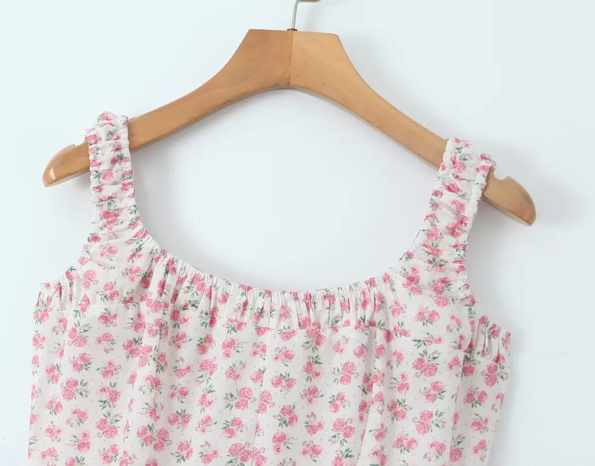 Elegant Women Floral Print Sling Midi Summer Dress Sexy Low Waist O Neck Female Holiday Party Robe