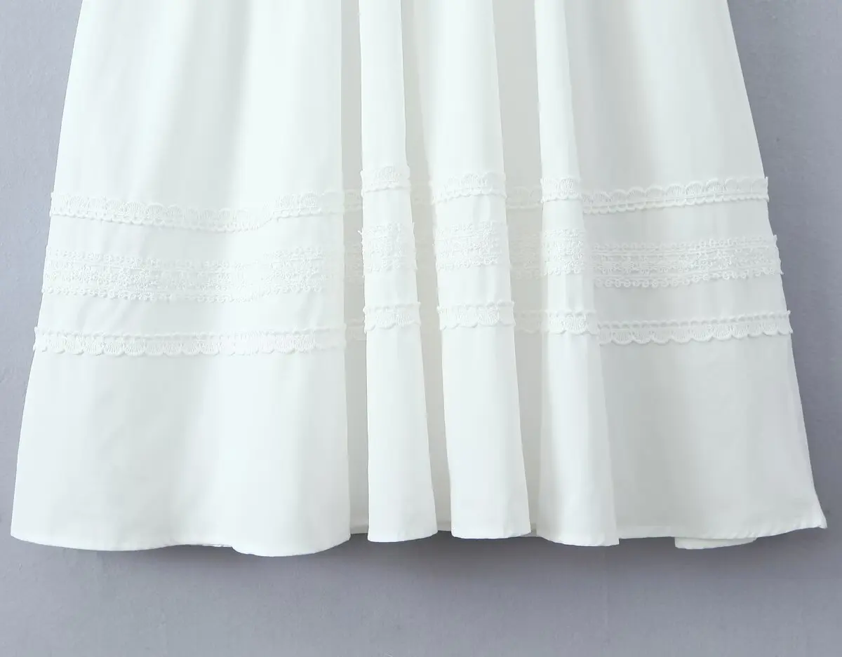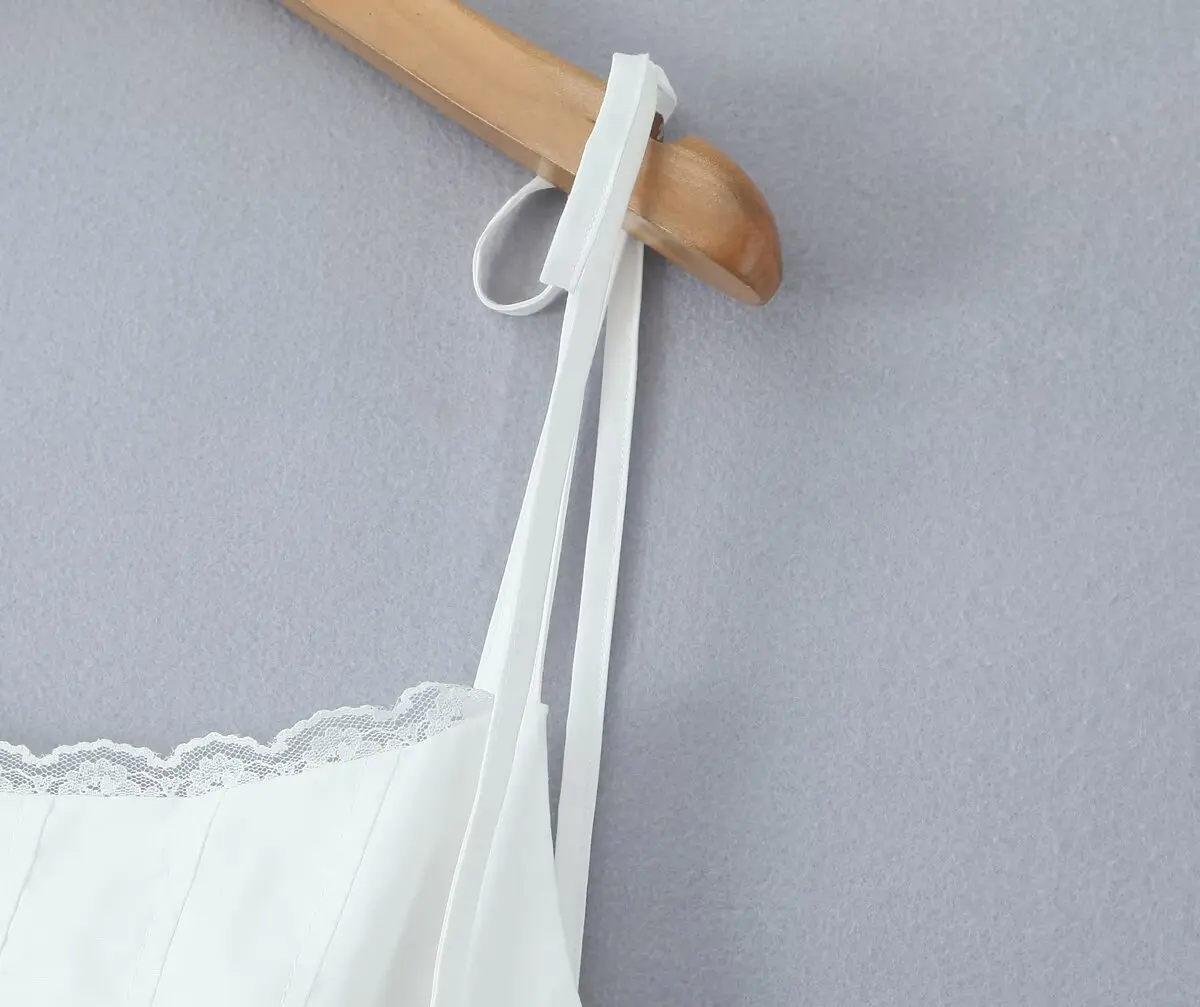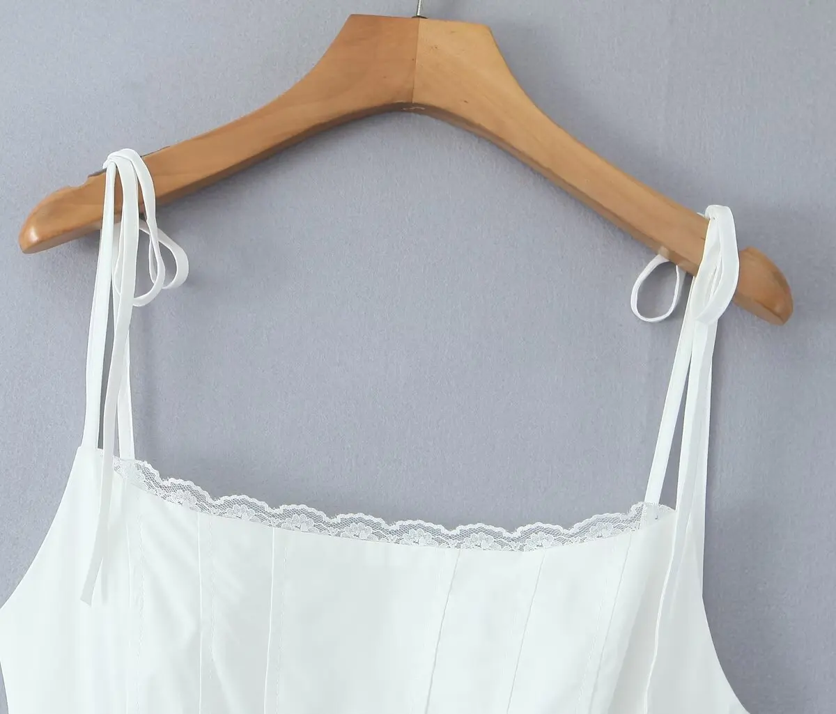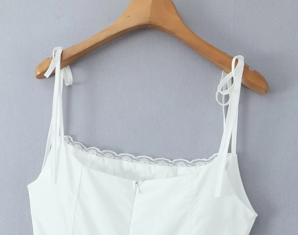 Elegant Women Lace Spliced Sexy Spaghetti Straps Dress Low Waist A-line Midi Long Summer Dresses Casual Party Robe Cotton