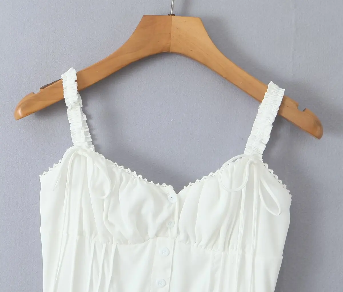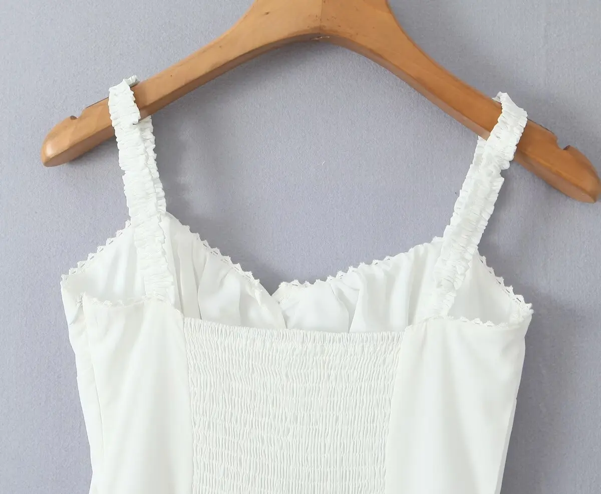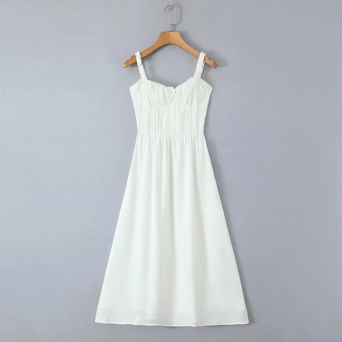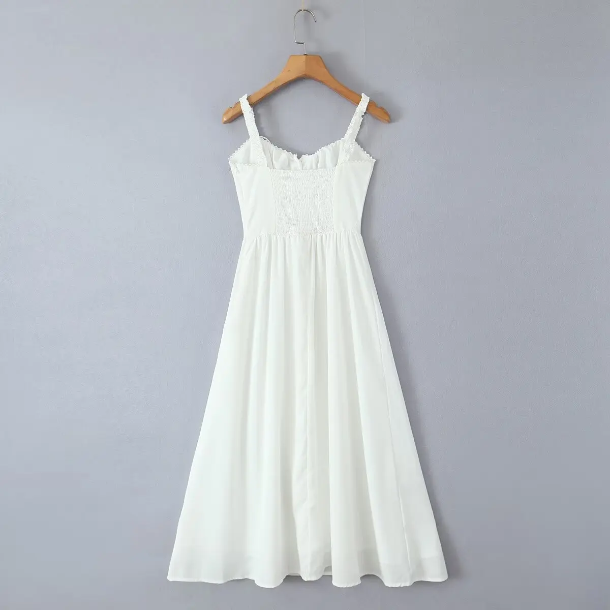 Elegant Women Midi Long White Sling Dress Sexy Sleeveless A-line Summer Holiday Party Dresses Female Robe