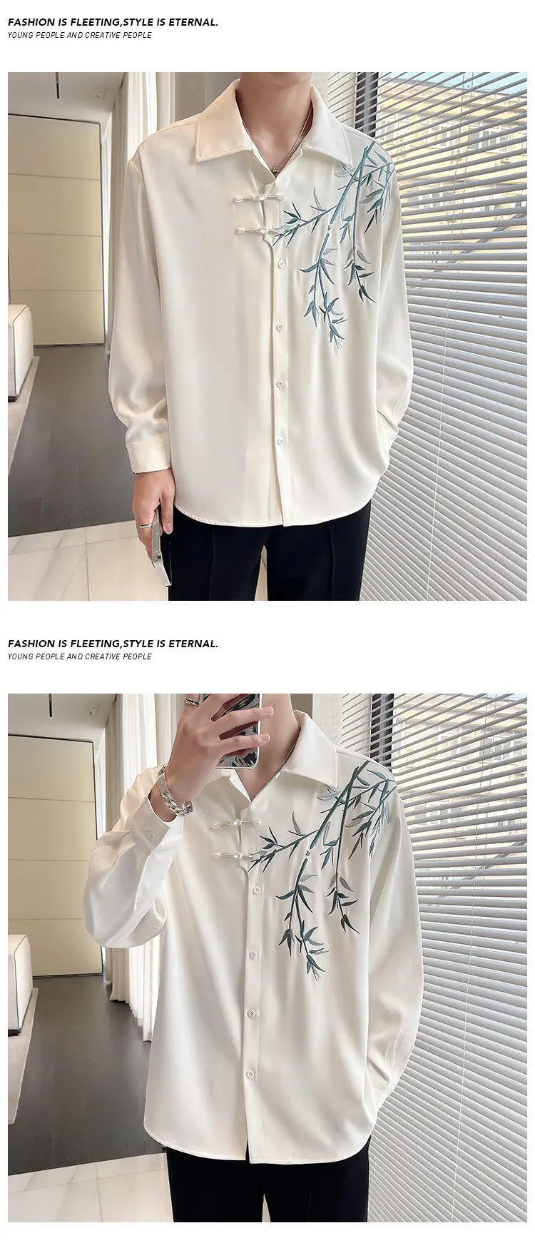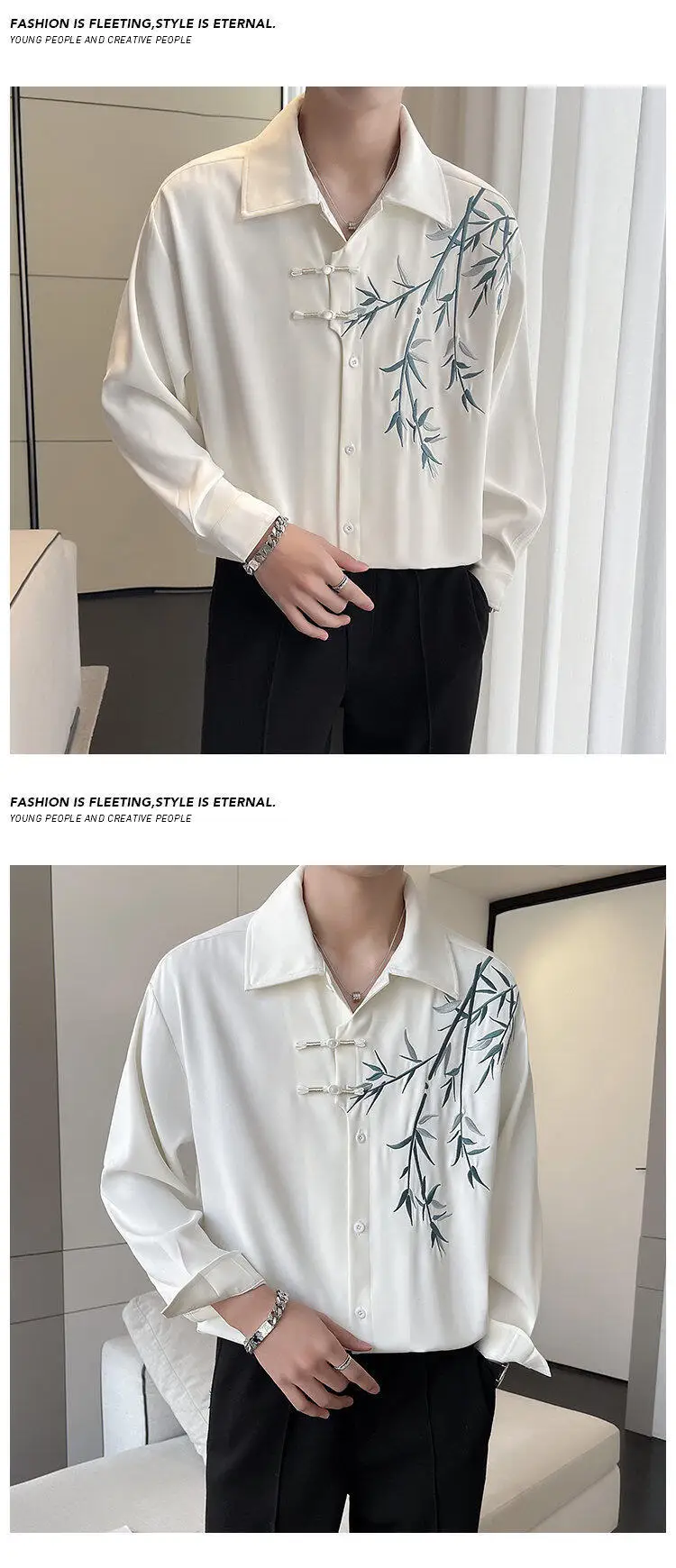 Long Sleeved Shirt Men Fashion Society Mens Dress Shirt Korean Loose Casual Shirt Men White Formal Shirts M-3XL