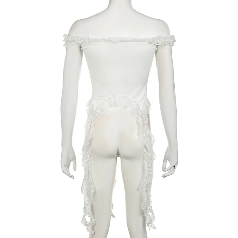 Fairy Coquette y2k Top Women Summer Lace Patchwork Off Shoulder Sleeveless Irregular Hem T Shirt 2000s Party Clubwear