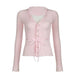 Fairycore Clothing Top y2k Women Ruffle Lace Patchwork Long Sleeve Knitted T Shirt 2000s Coquette Clothes Streetwear