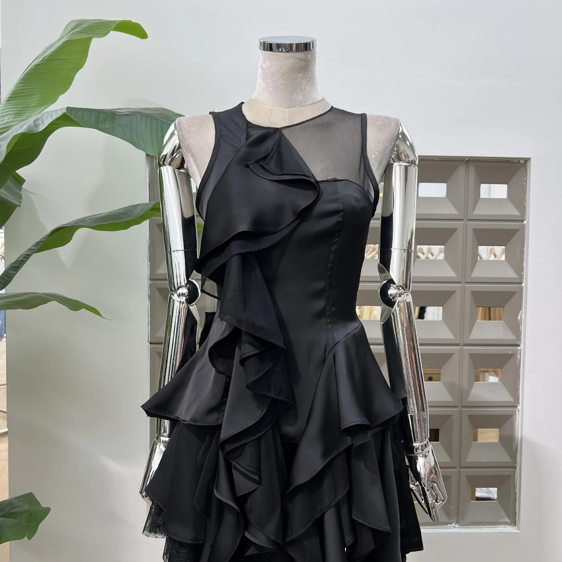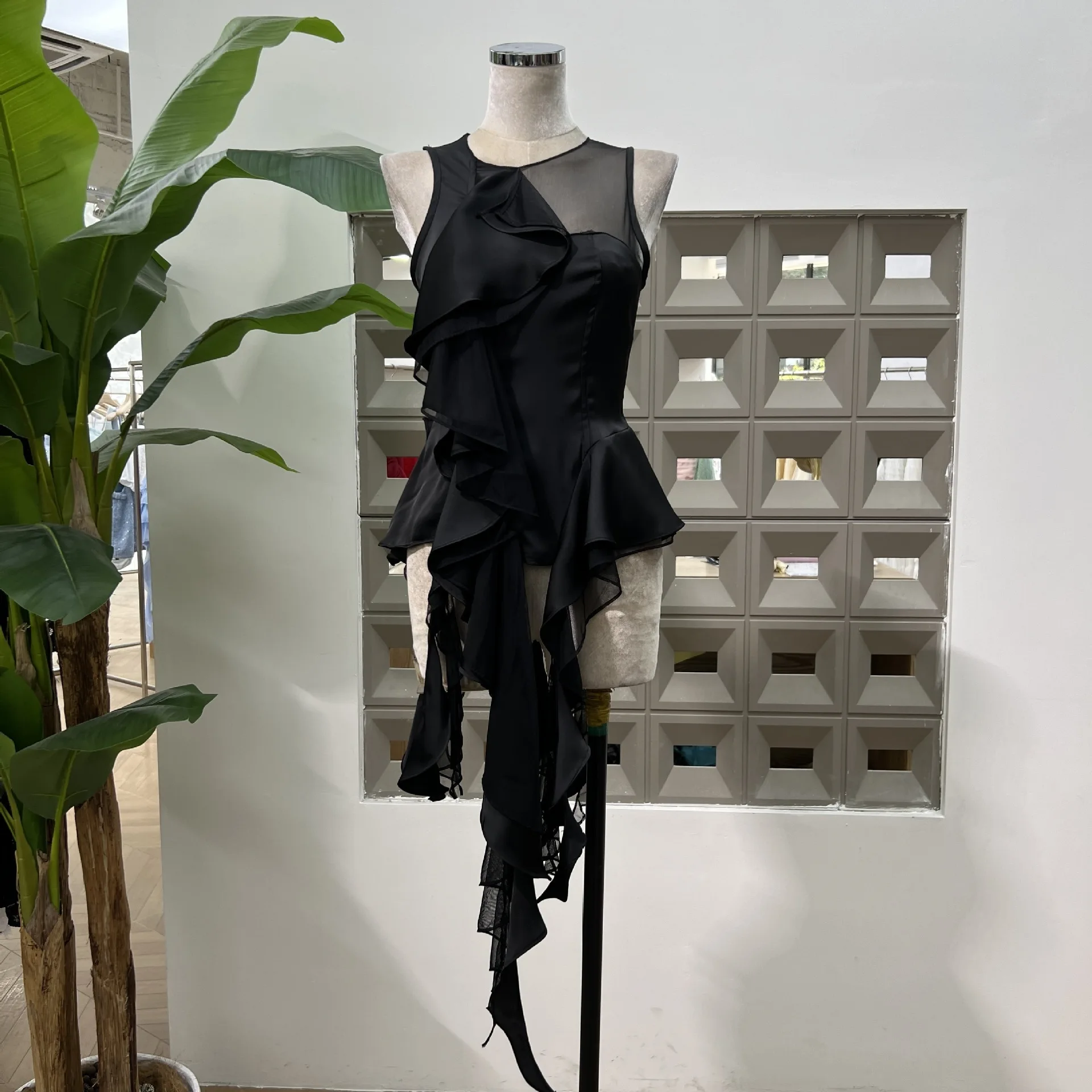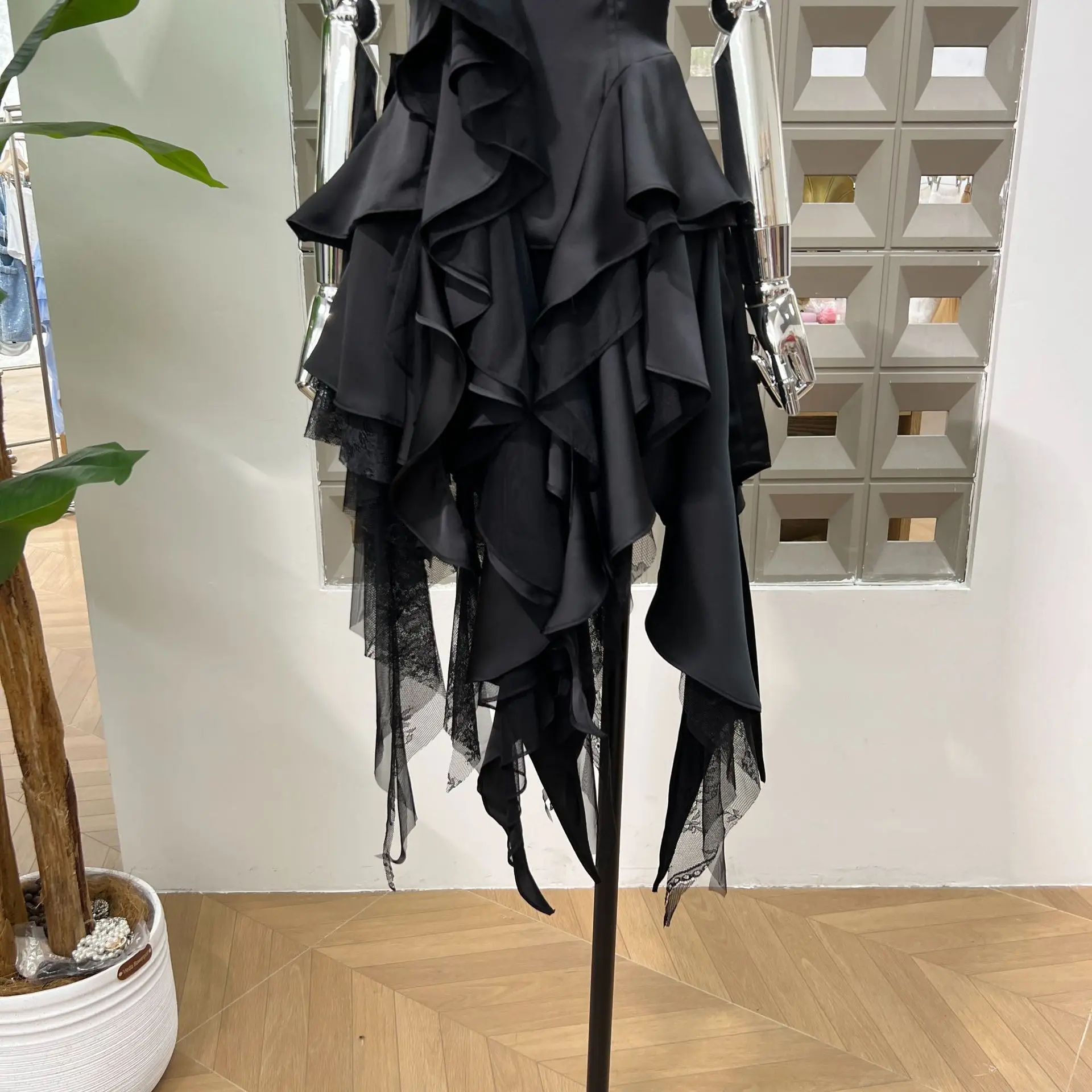 Fashion Black 2 Piece Set Women's Off Shoulder Irregular Top High Wiast Irregular Ribbon Mini Skirt Suit Summer New 3A107