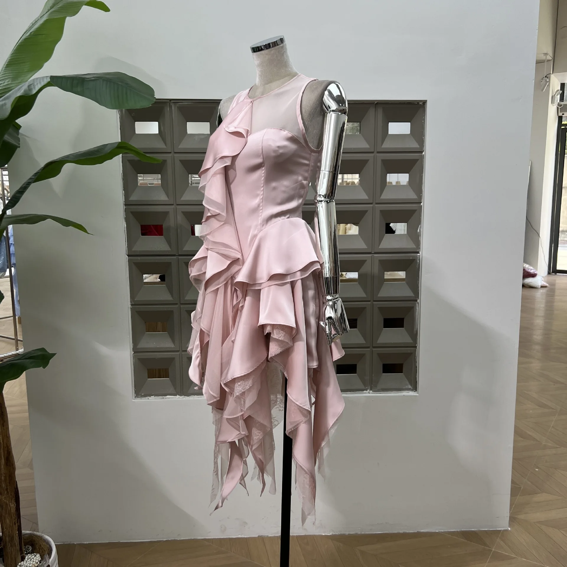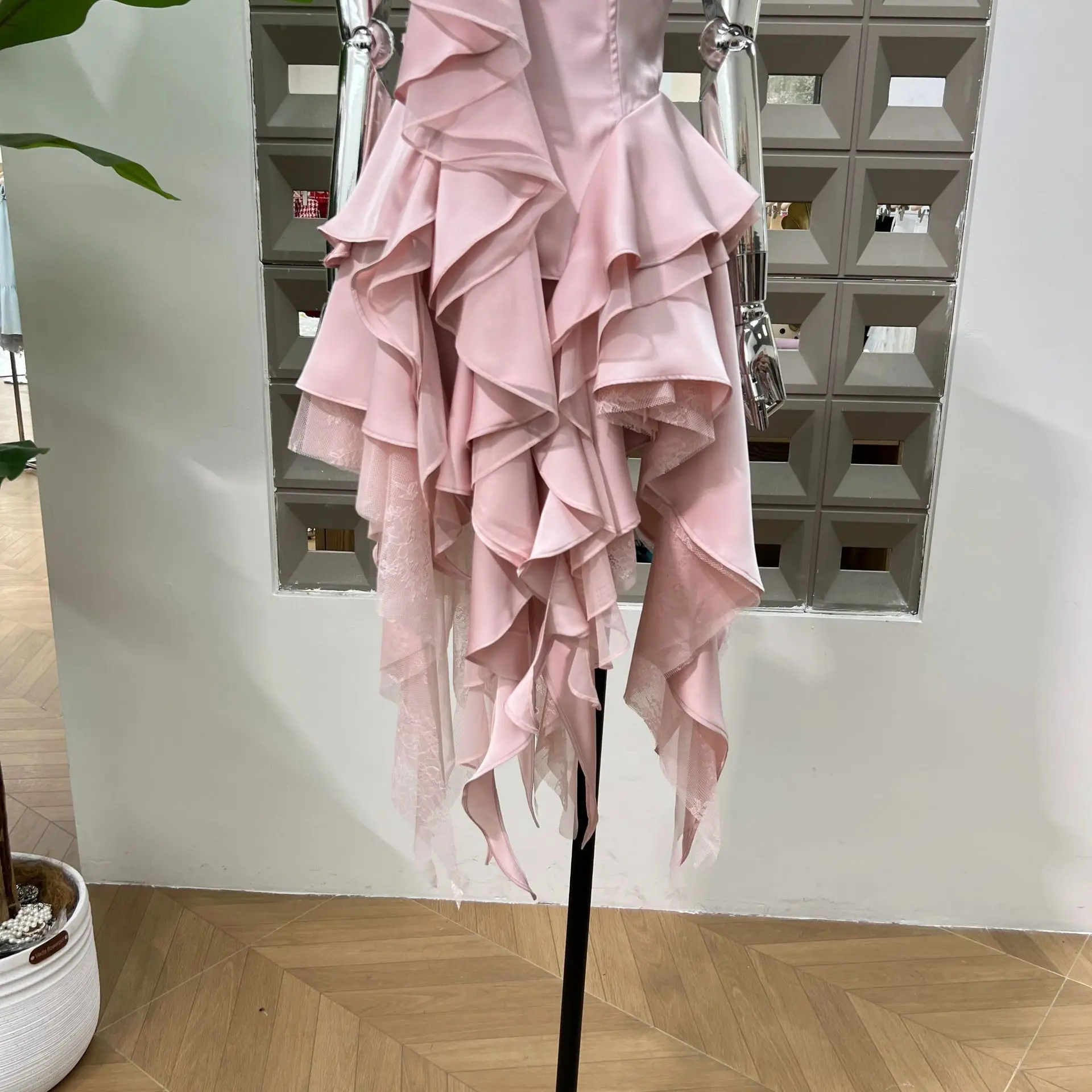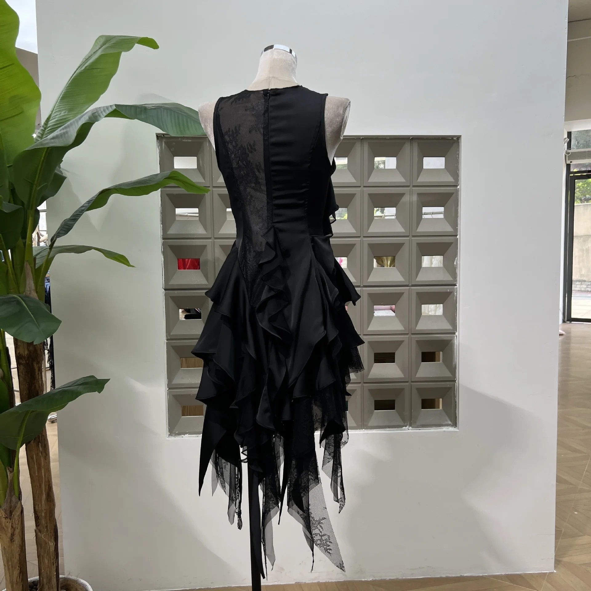 Fashion Black 2 Piece Set Women's Off Shoulder Irregular Top High Wiast Irregular Ribbon Mini Skirt Suit Summer New 3A107