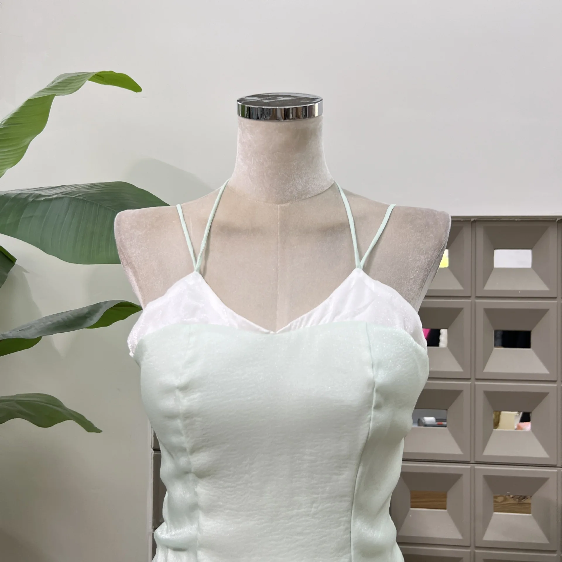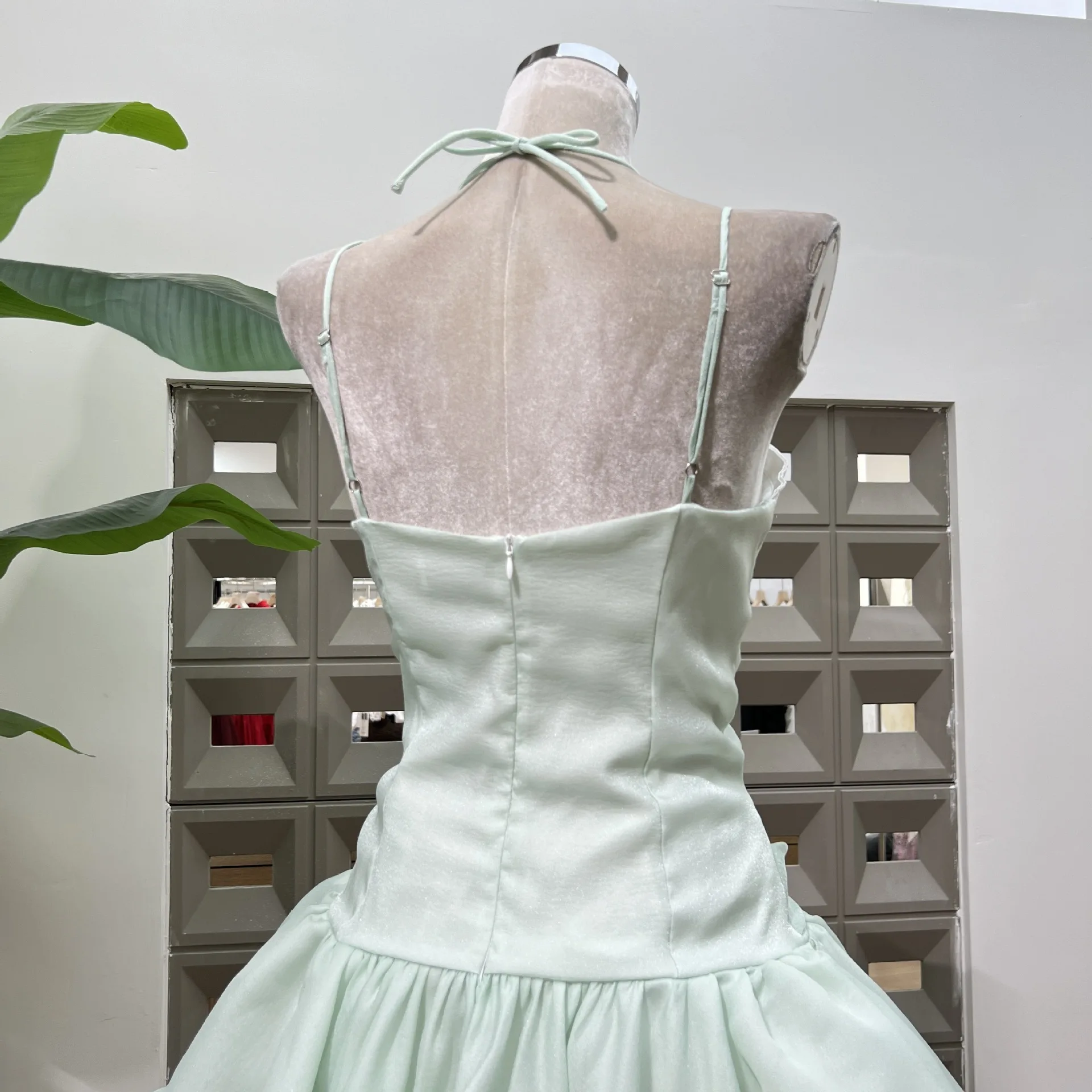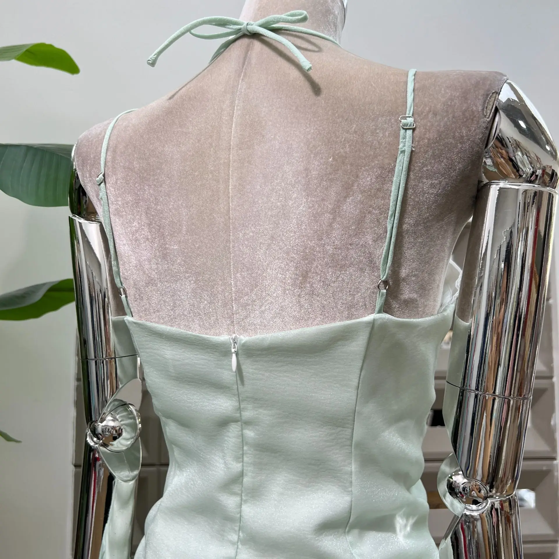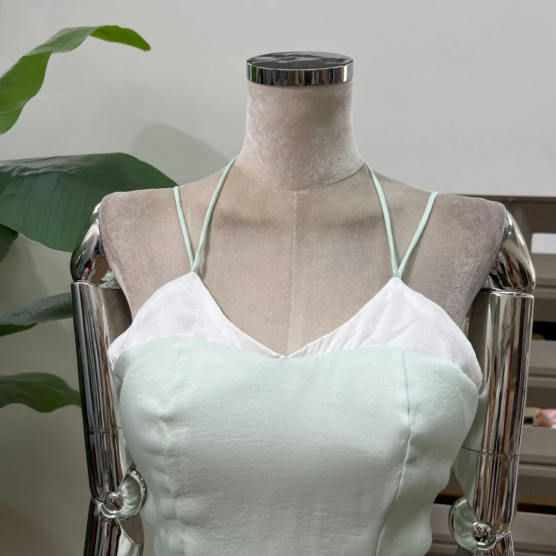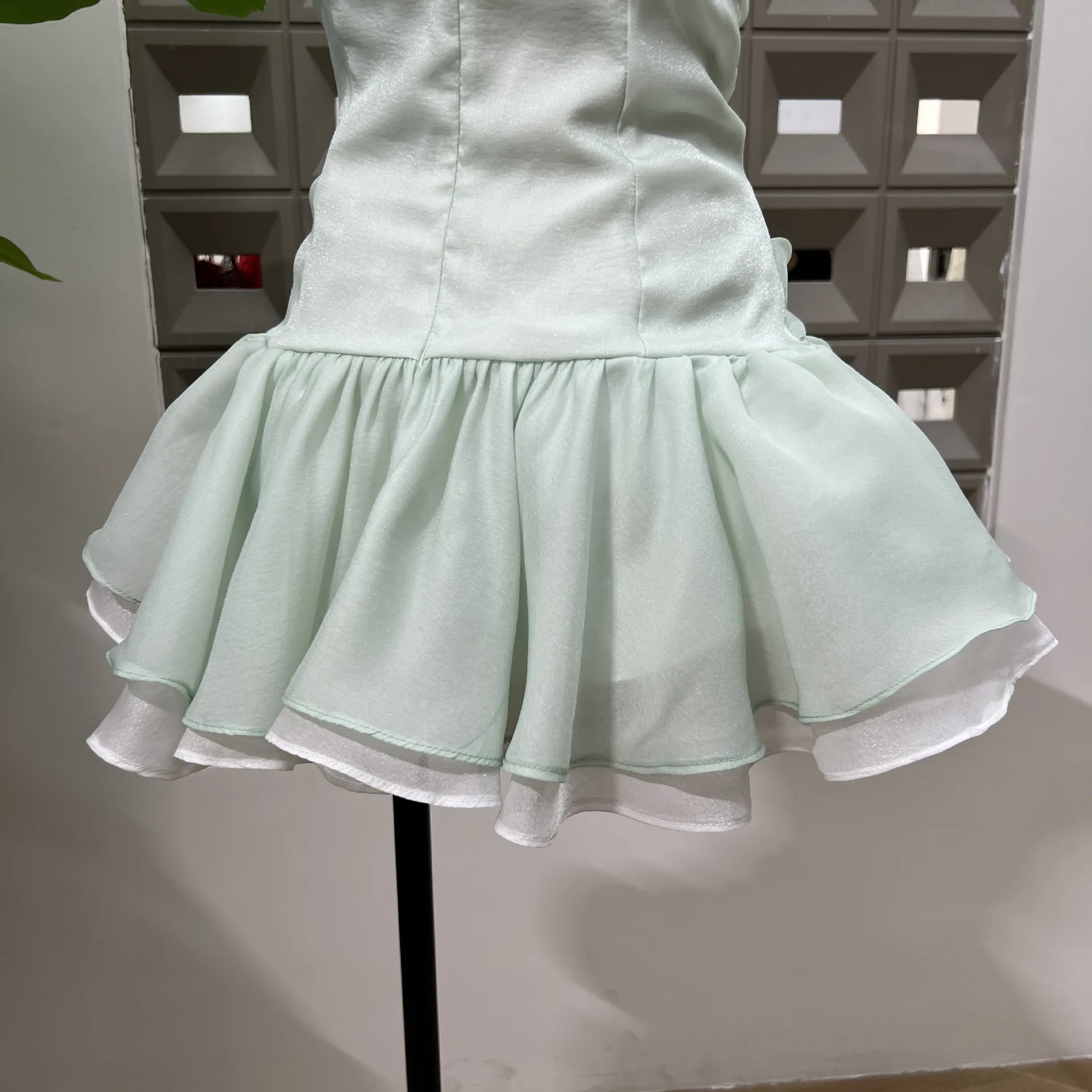 Fashion Contrast Color Green Spaghetti Strap Dress Women's Slim Metal Buckle Bottom Shorts Mini Dresses Summer New 3A106