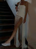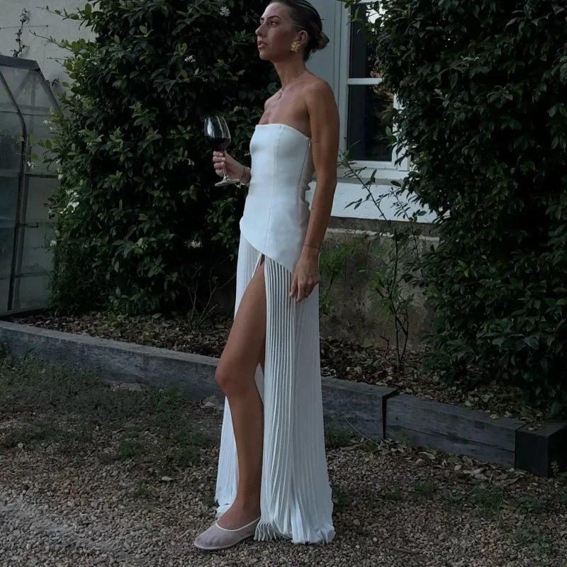 Fashion Ruffle Hem Off Shoulder Patchwork Dress Women Elegant Irregular High Split Long Dresses Summer Lady Evening Party Robes