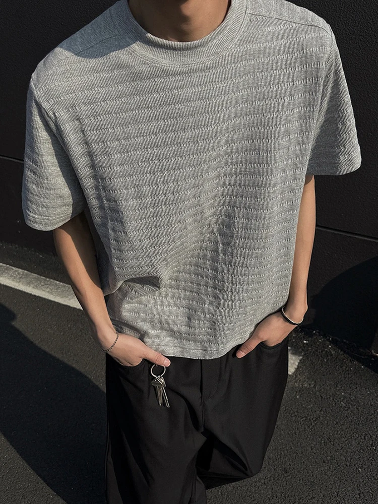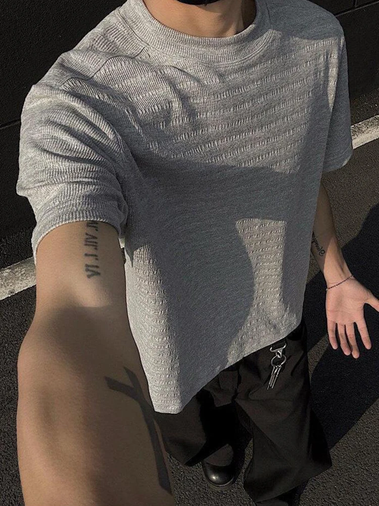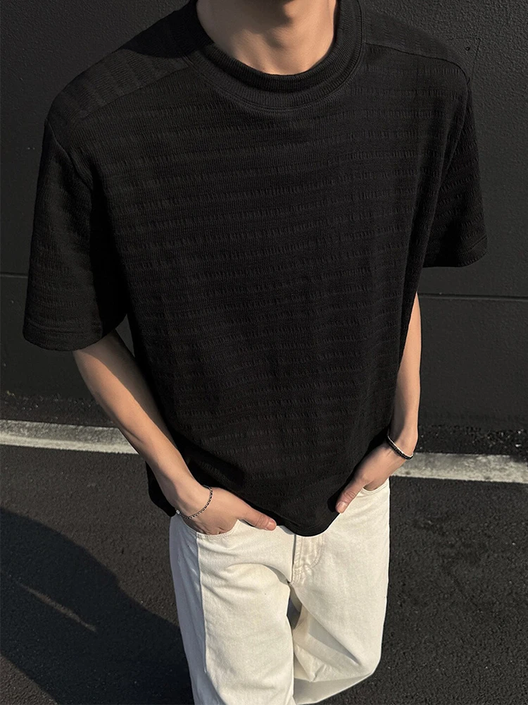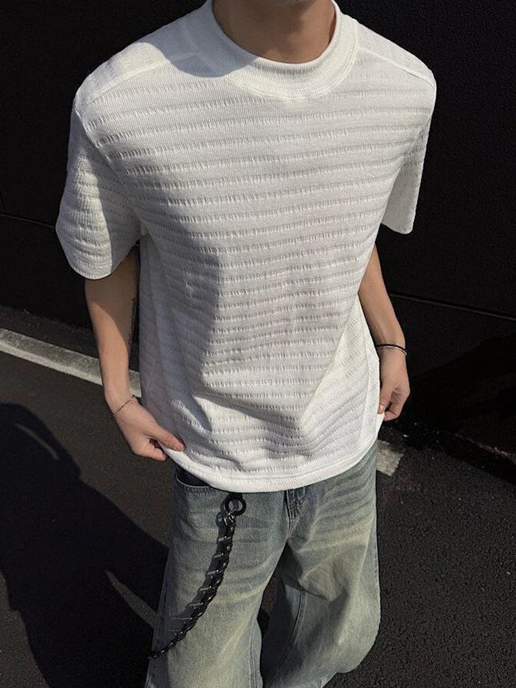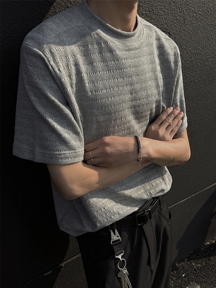 Fashion Textured Knitted T Shirts Mens Spring Summer Casual Solid Color Short Sleeve Slim Men T-shirt Trendy Crew Neck Tee Tops