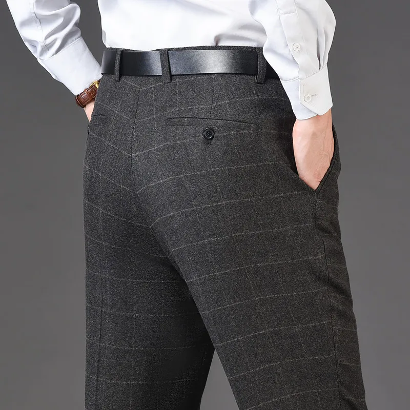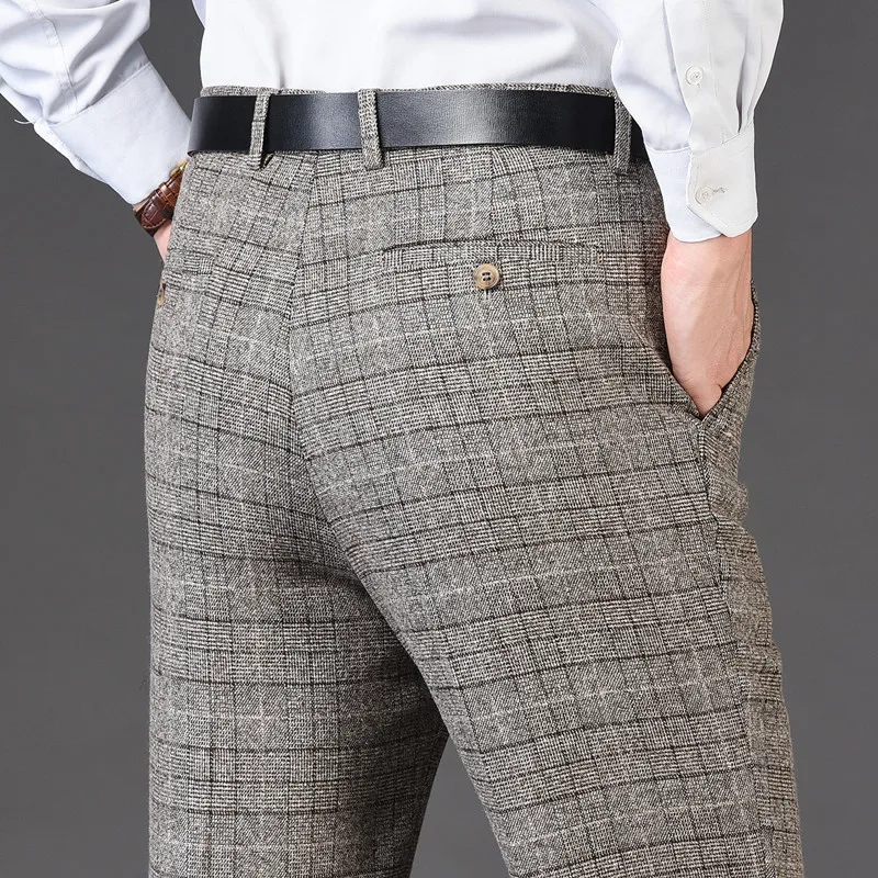 Flat Cashmere Suit Trouser For Male Loose Plaid Hight Waist Classic Straight Formal Mens Dress Pants Business Size 42 44 voguable