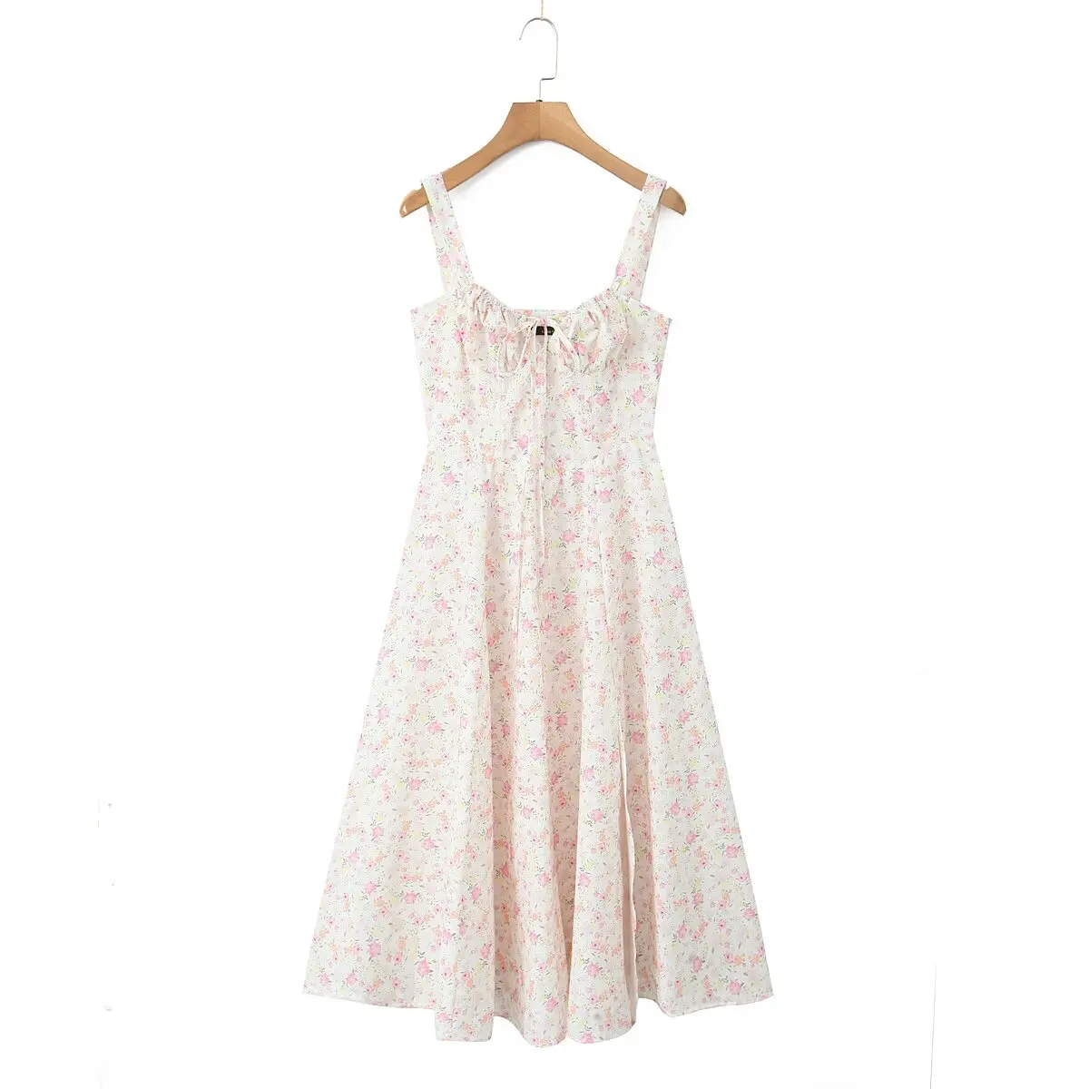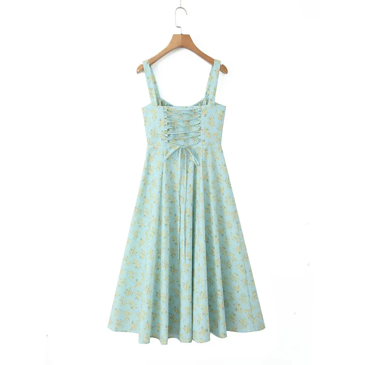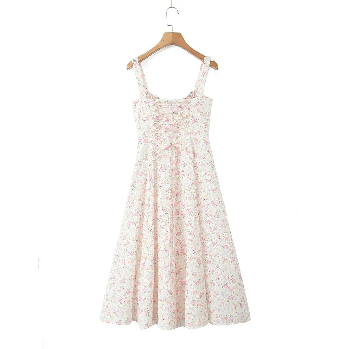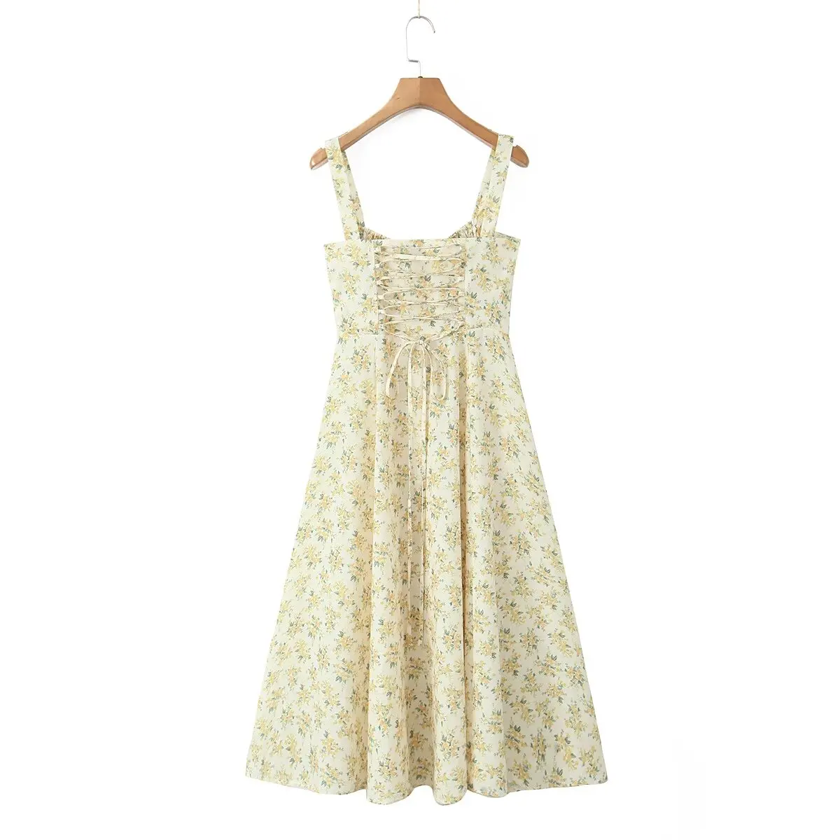 Floral Bustier Midriff Waist Shaper Dress Elegant Women Lacing Up Bandage Back Sexy Slit Holiday Summer Dress Party Robe