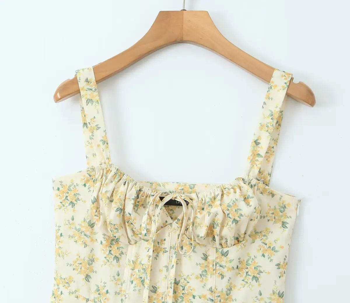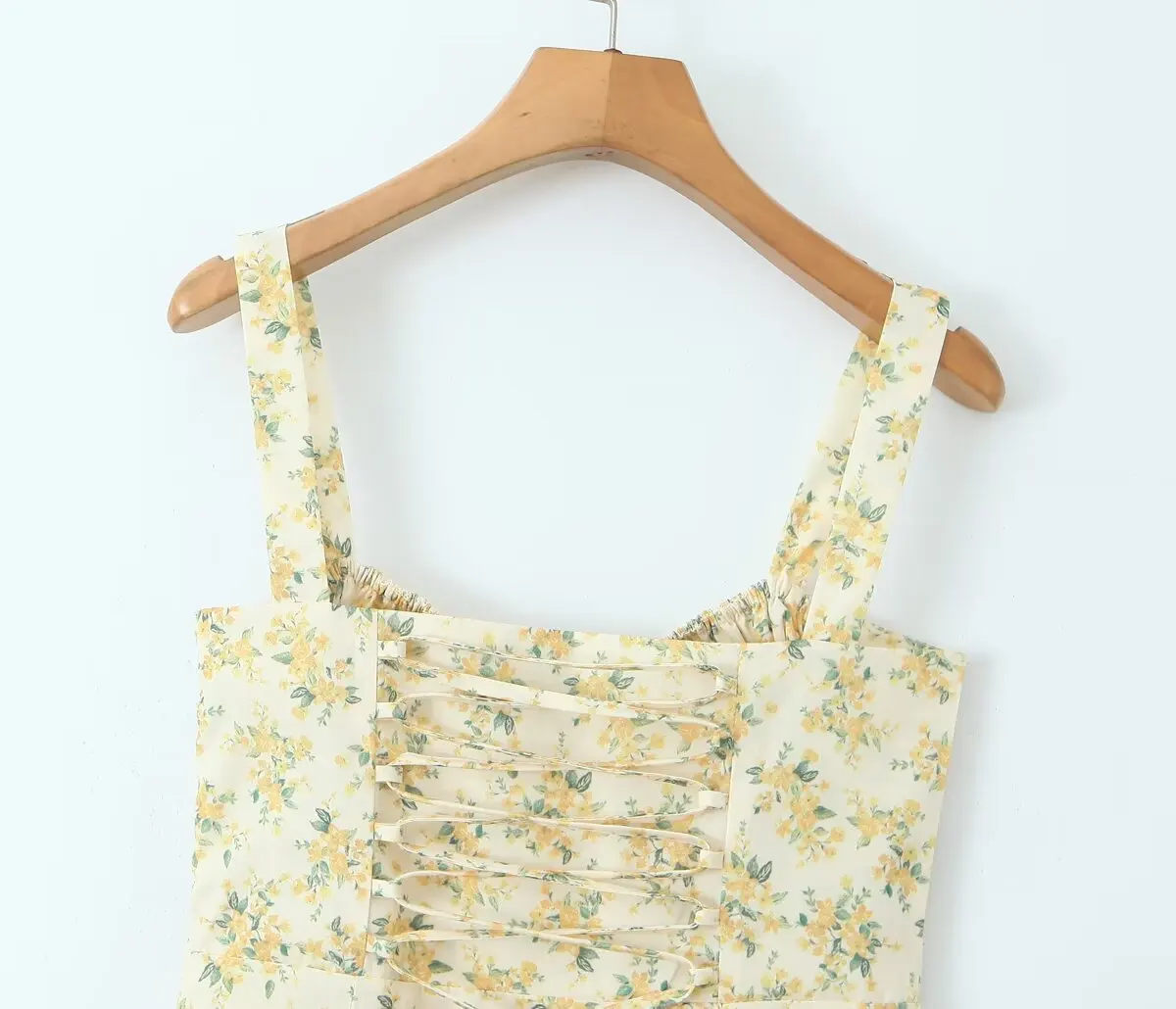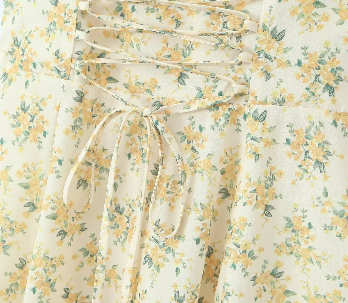 Floral Bustier Midriff Waist Shaper Dress Elegant Women Lacing Up Bandage Back Sexy Slit Holiday Summer Dress Party Robe