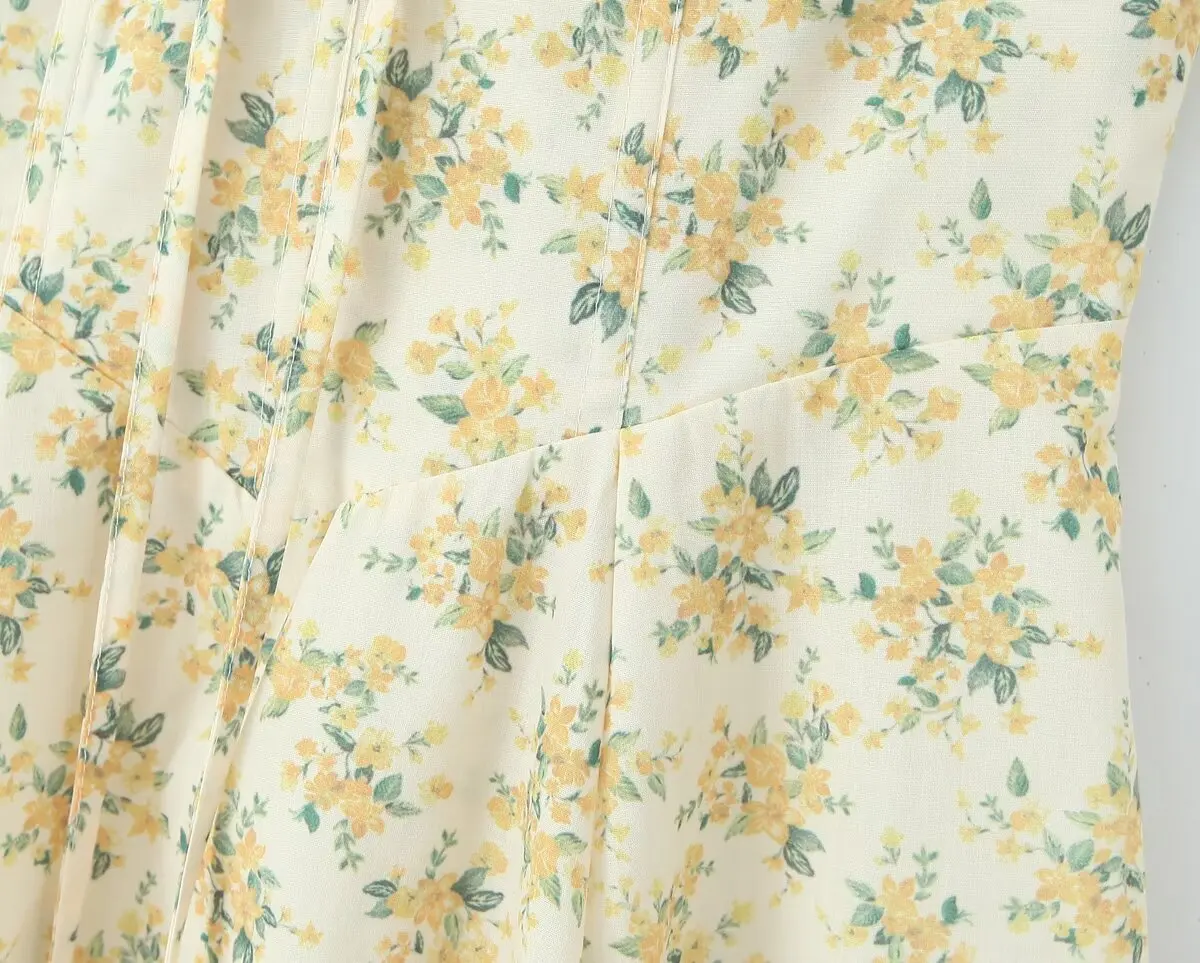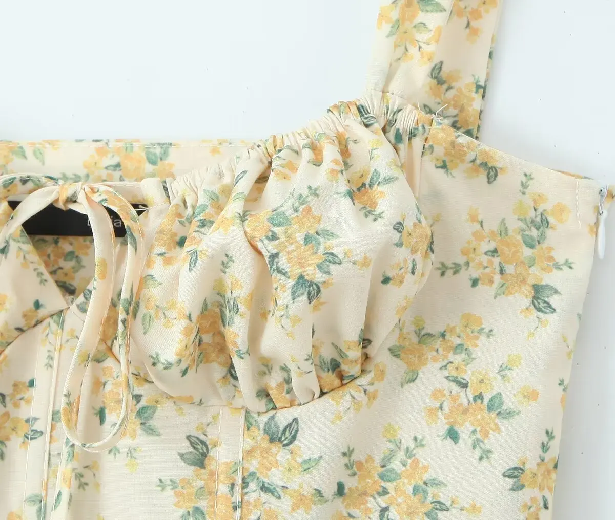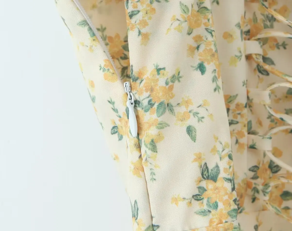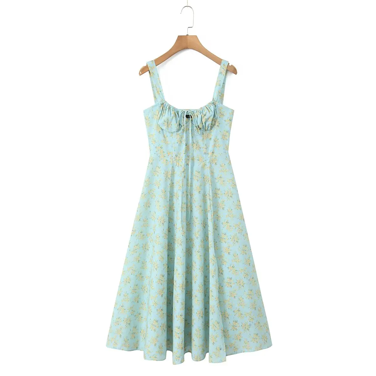 Floral Bustier Midriff Waist Shaper Dress Elegant Women Lacing Up Bandage Back Sexy Slit Holiday Summer Dress Party Robe