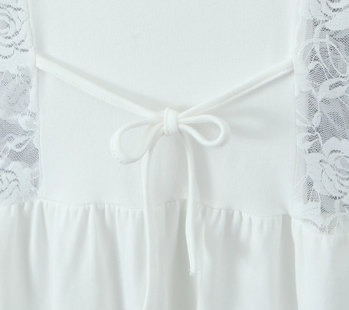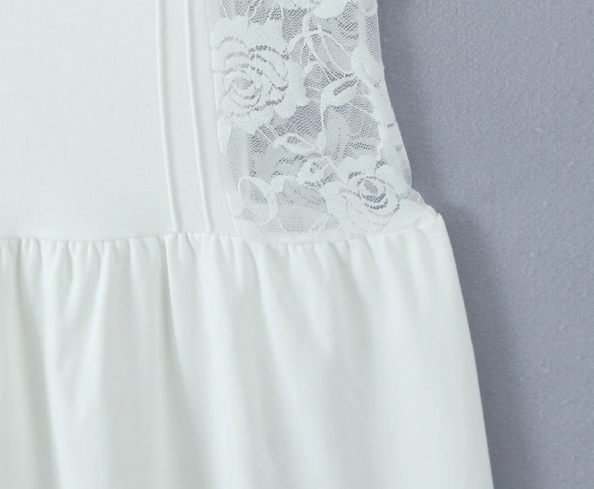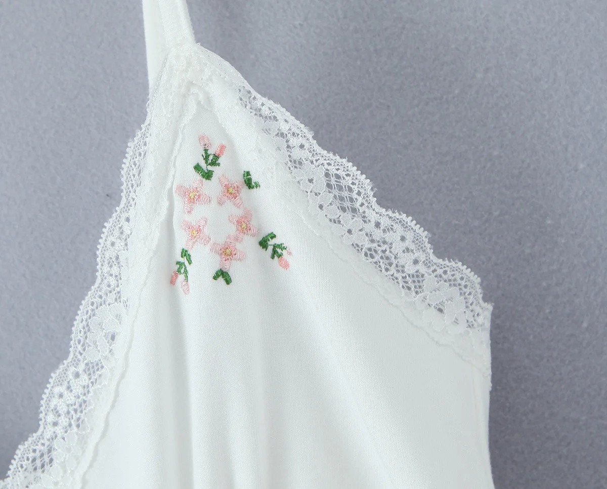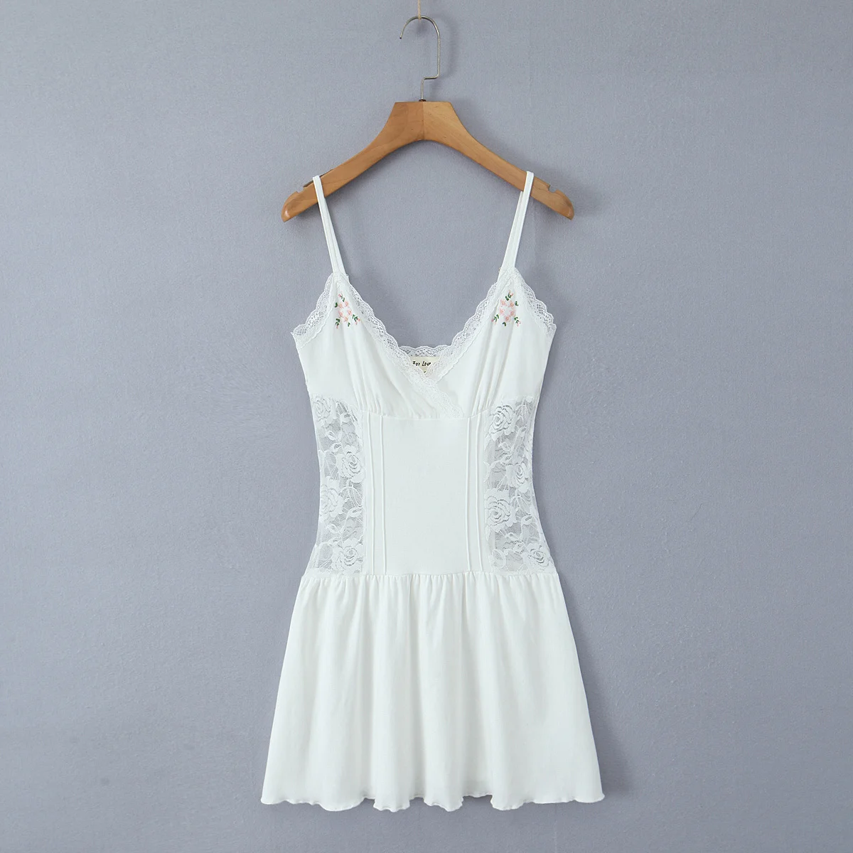 Floral Embroidery Lace Spliced Spaghetti Straps Dress Women V Neck A-line Mini White Knit Sexy Dresses Summer Robe