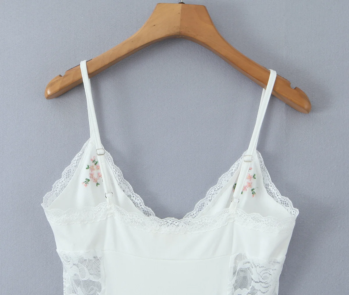 Floral Embroidery Lace Spliced Spaghetti Straps Dress
