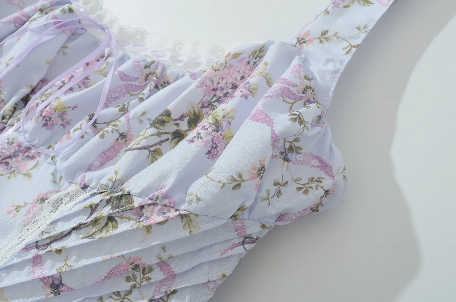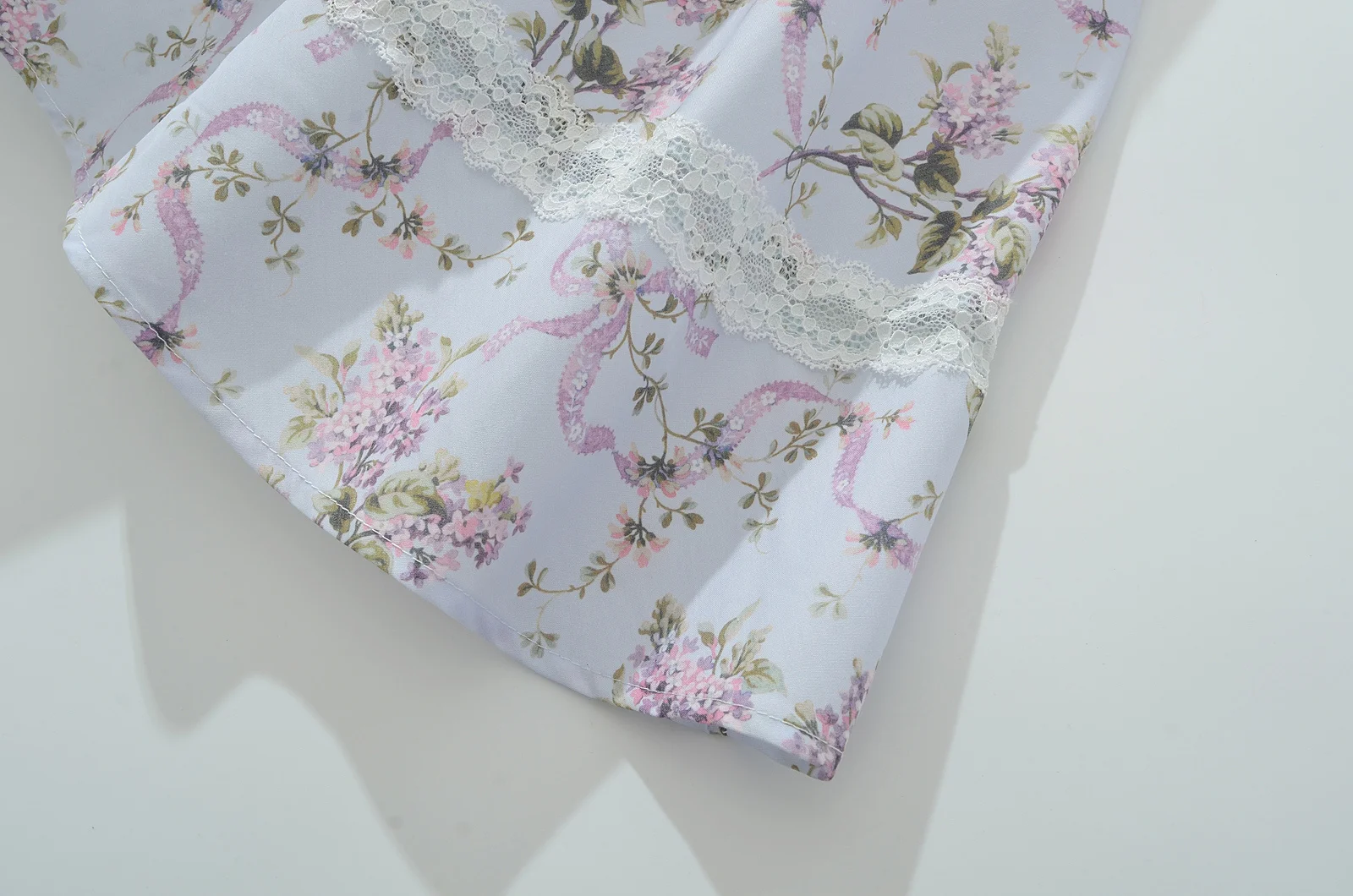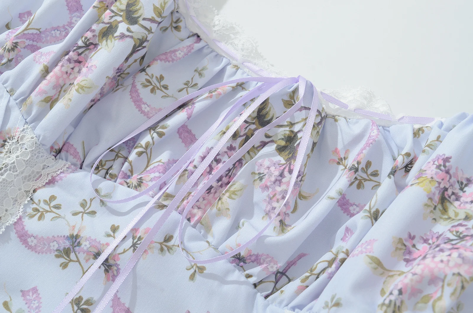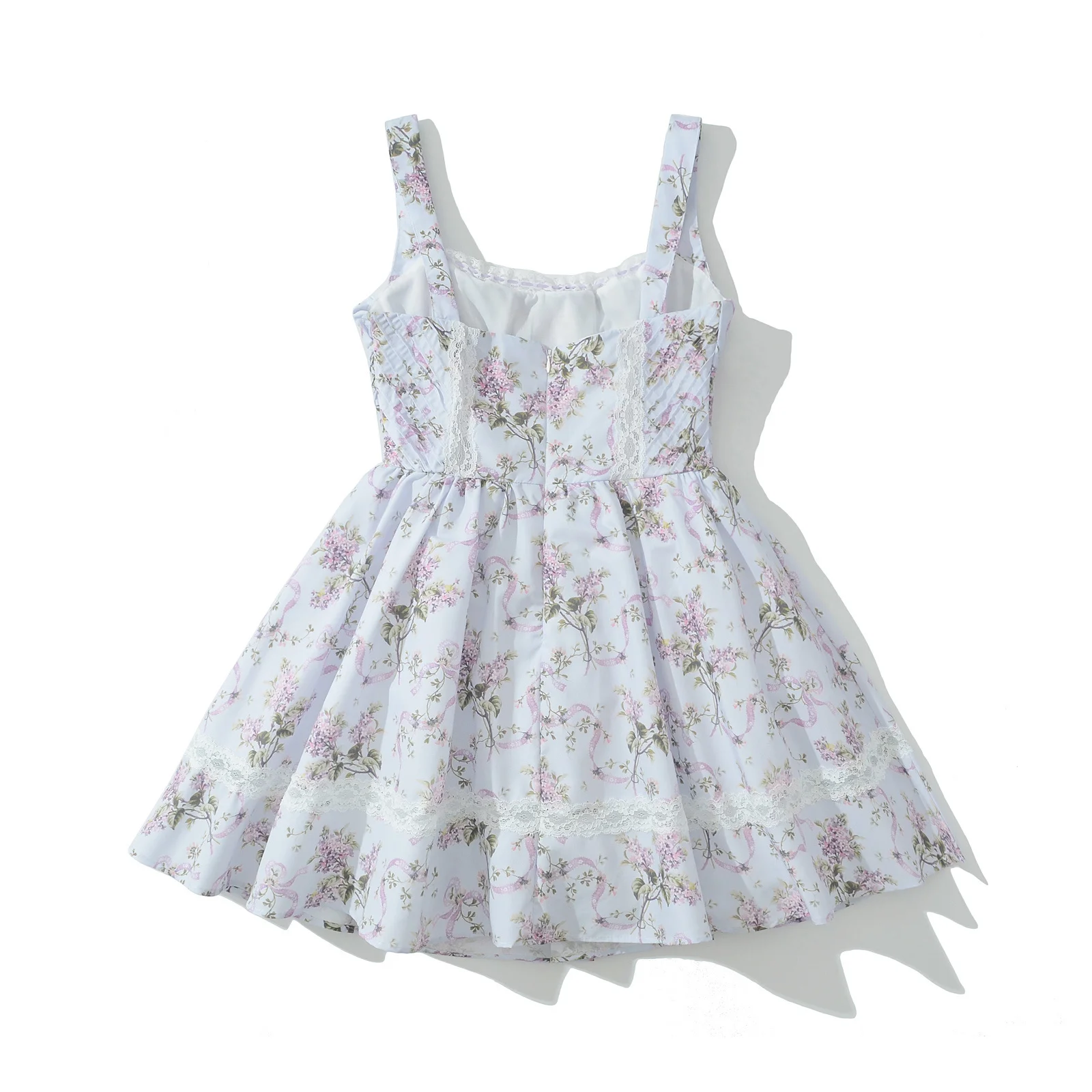 Floral Print Tank Mini Dress Women Lace Spliced O Neck Sleeveless A-line Holiday Casual Summer Dresses Party Robe