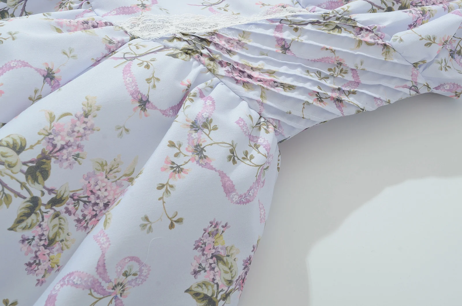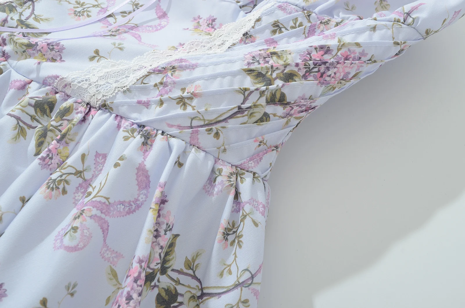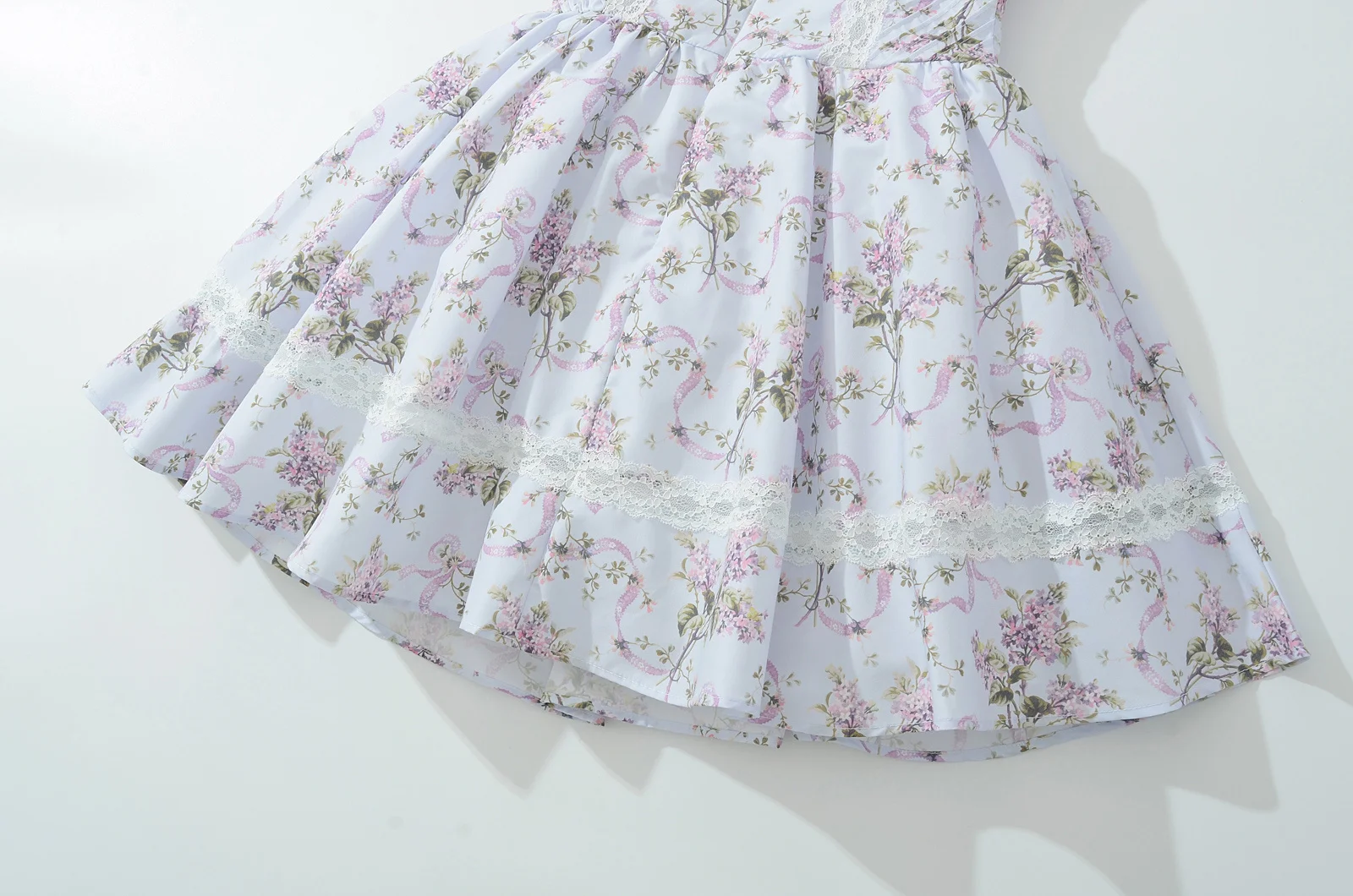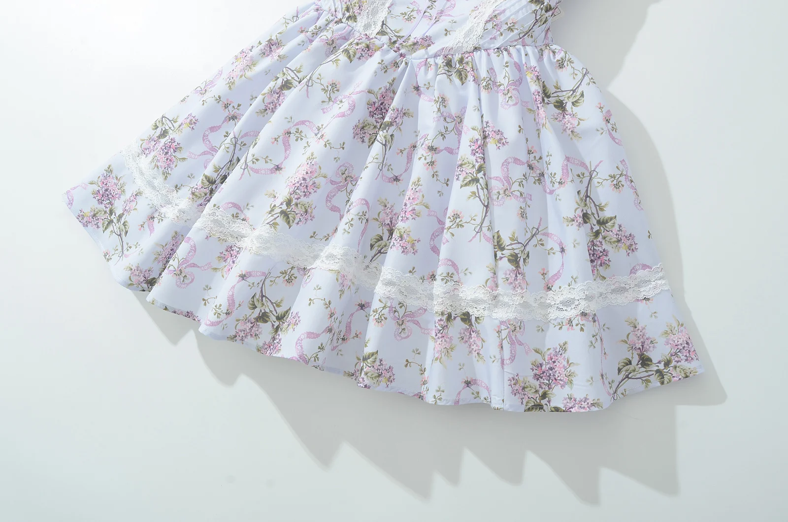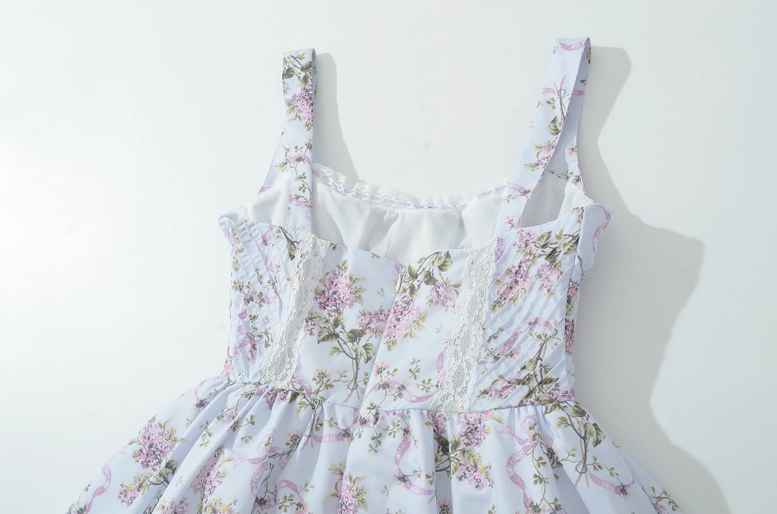 Floral Print Tank Mini Dress Women Lace Spliced O Neck Sleeveless A-line Holiday Casual Summer Dresses Party Robe